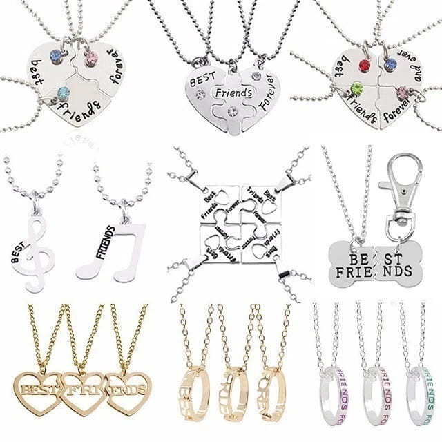 Trzy łańcuszki z zawieszkami Best Friends Forever