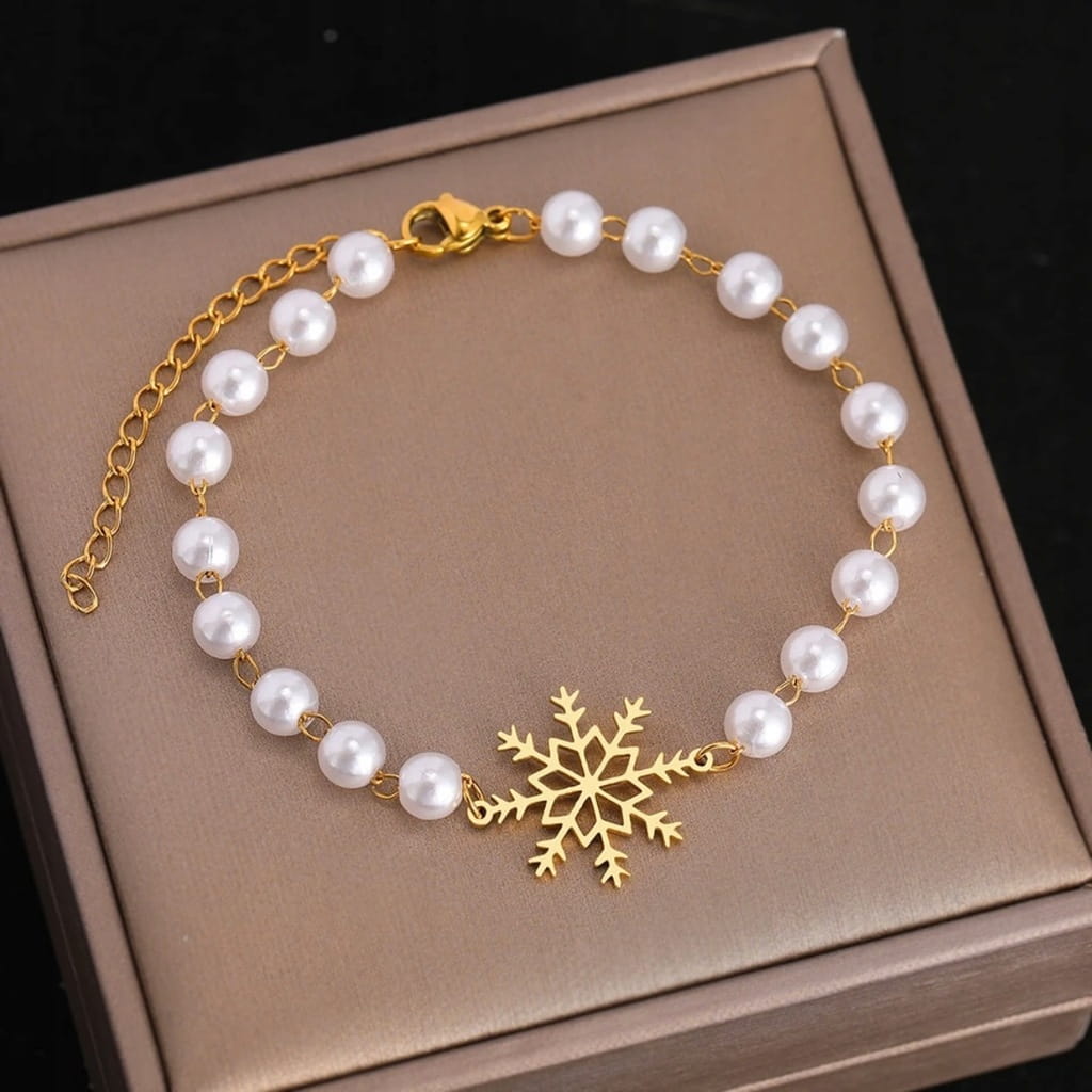 ✅ bransoletka z białych perełek ze złotymi dodatkami.