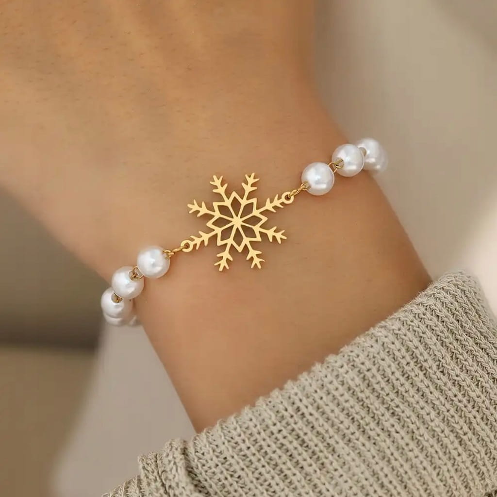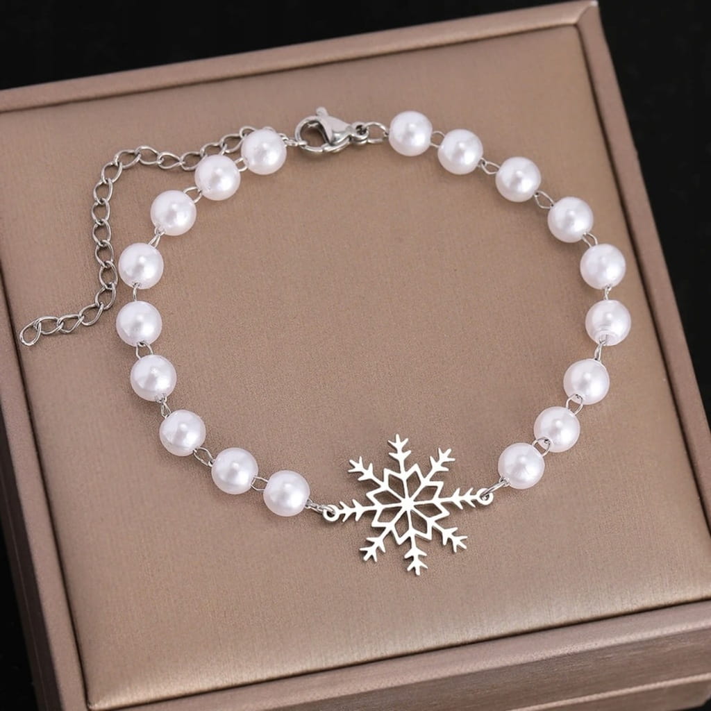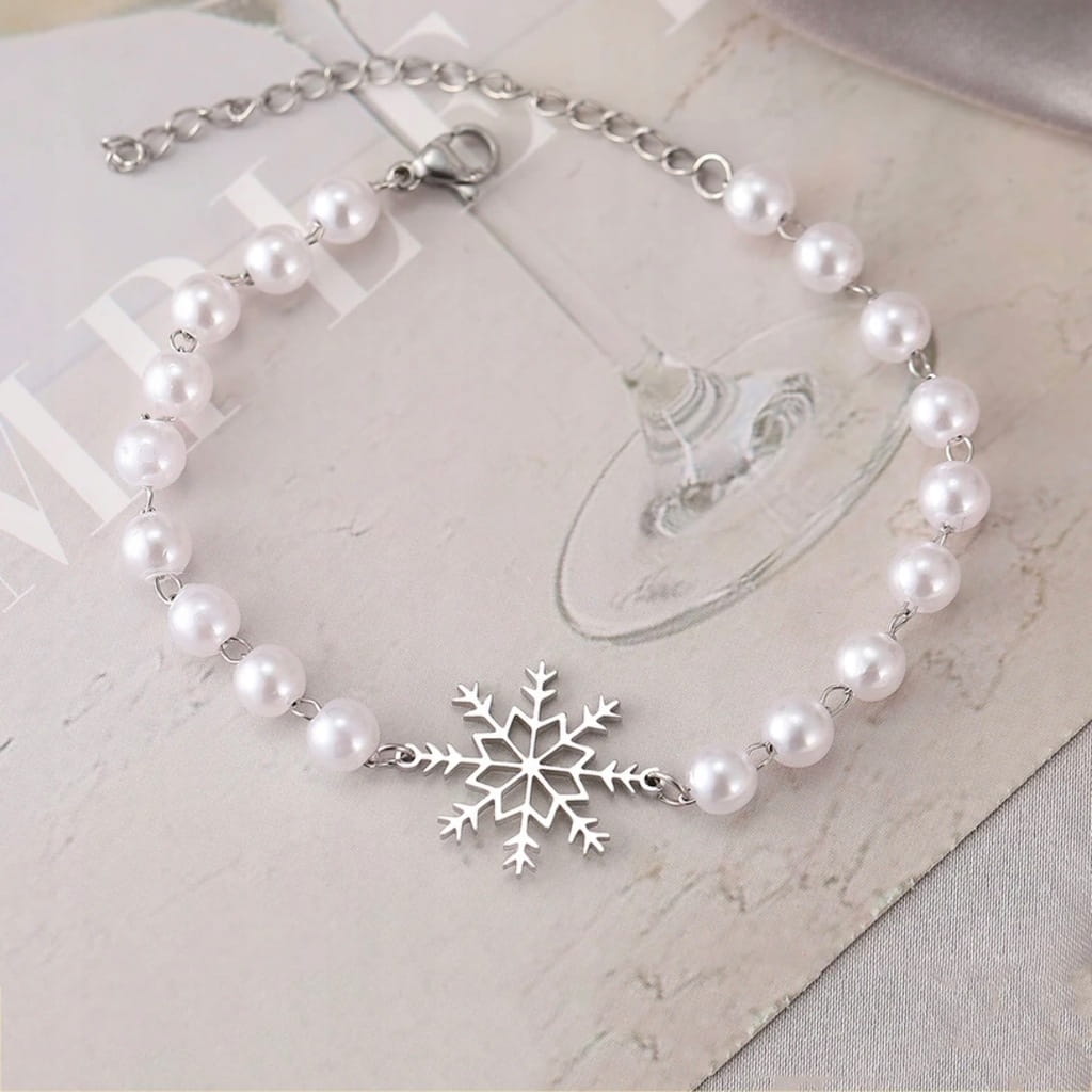 ✅Bransoletka z białych perełek ze srebrnymi dodatkami.