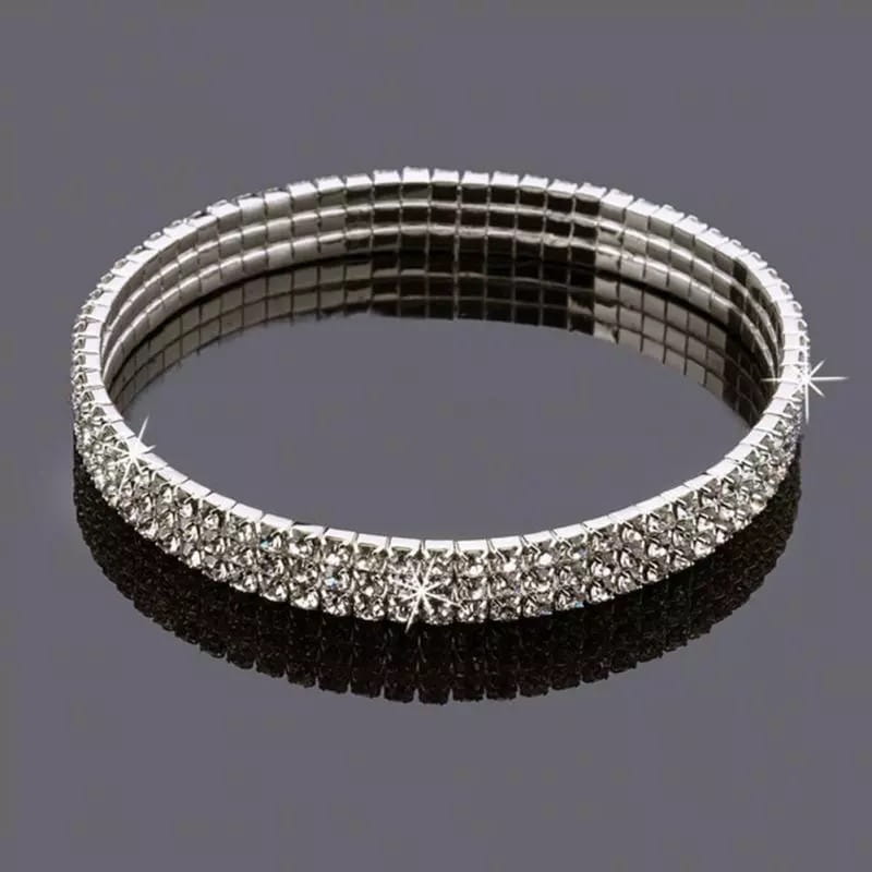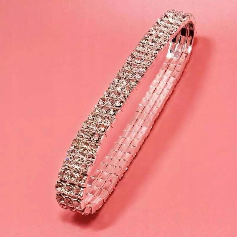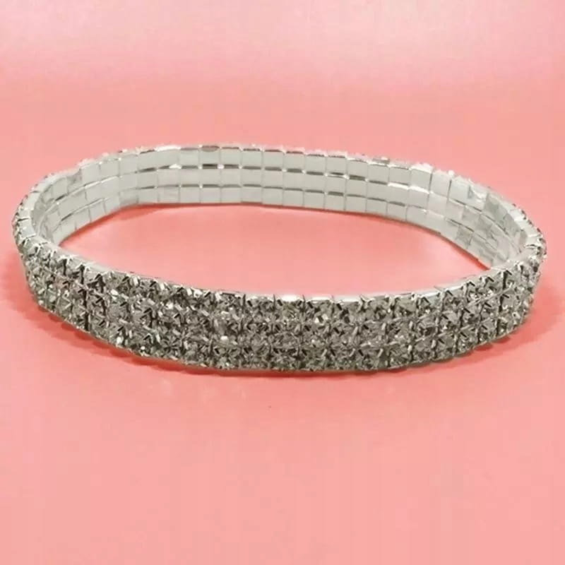 ✅ Posrebrzana bransoletka na gumce, wykonana z przepięknie błyszczących kamyczków, imitujących cyrkonie.