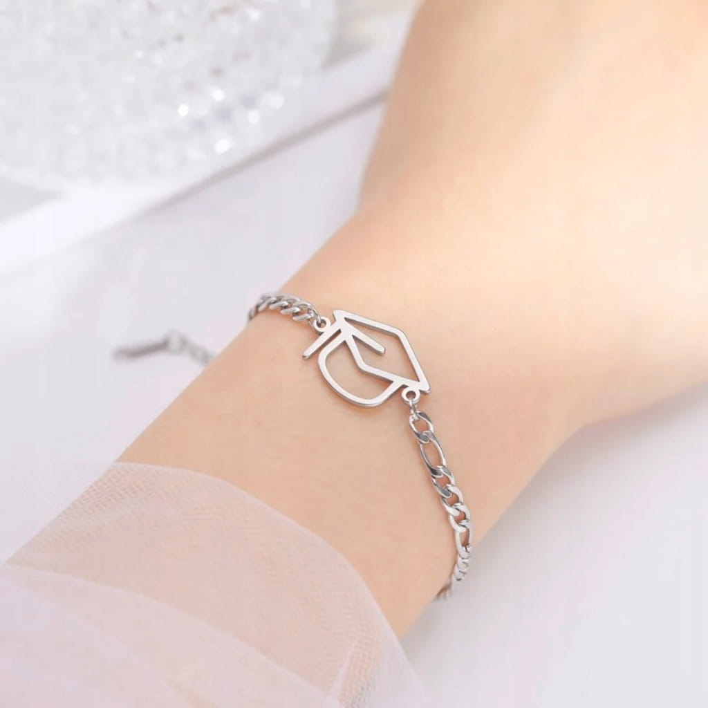 ✅Posrebrzana bransoletka ze studencką czapką.