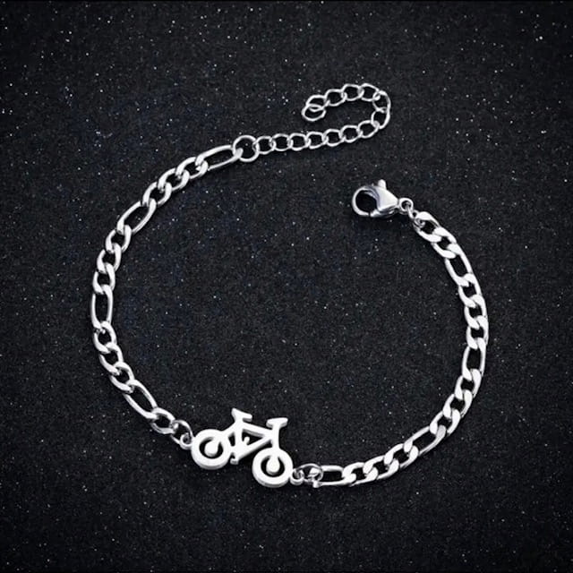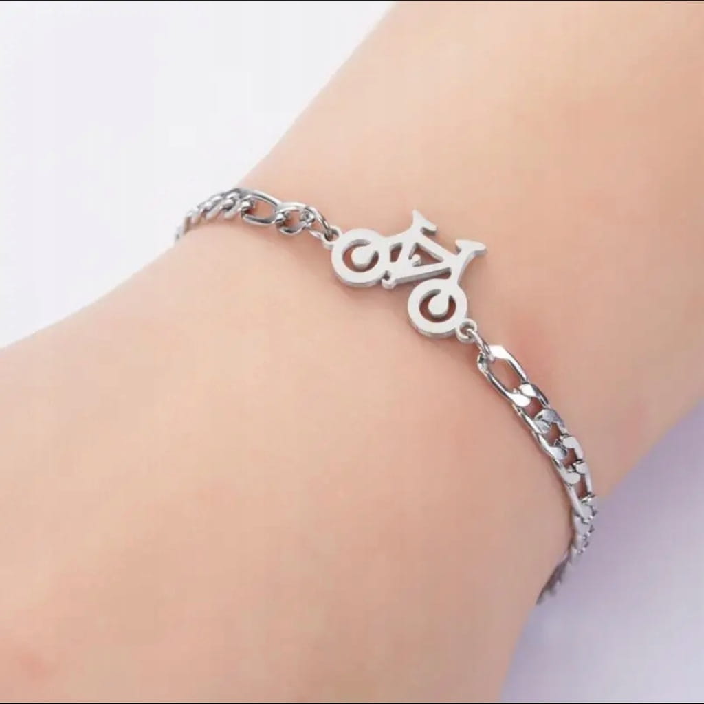 Bransoletka rower rowerek stal nierdzewna posrebrzana łańcuszek 92