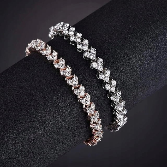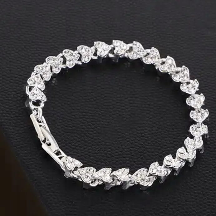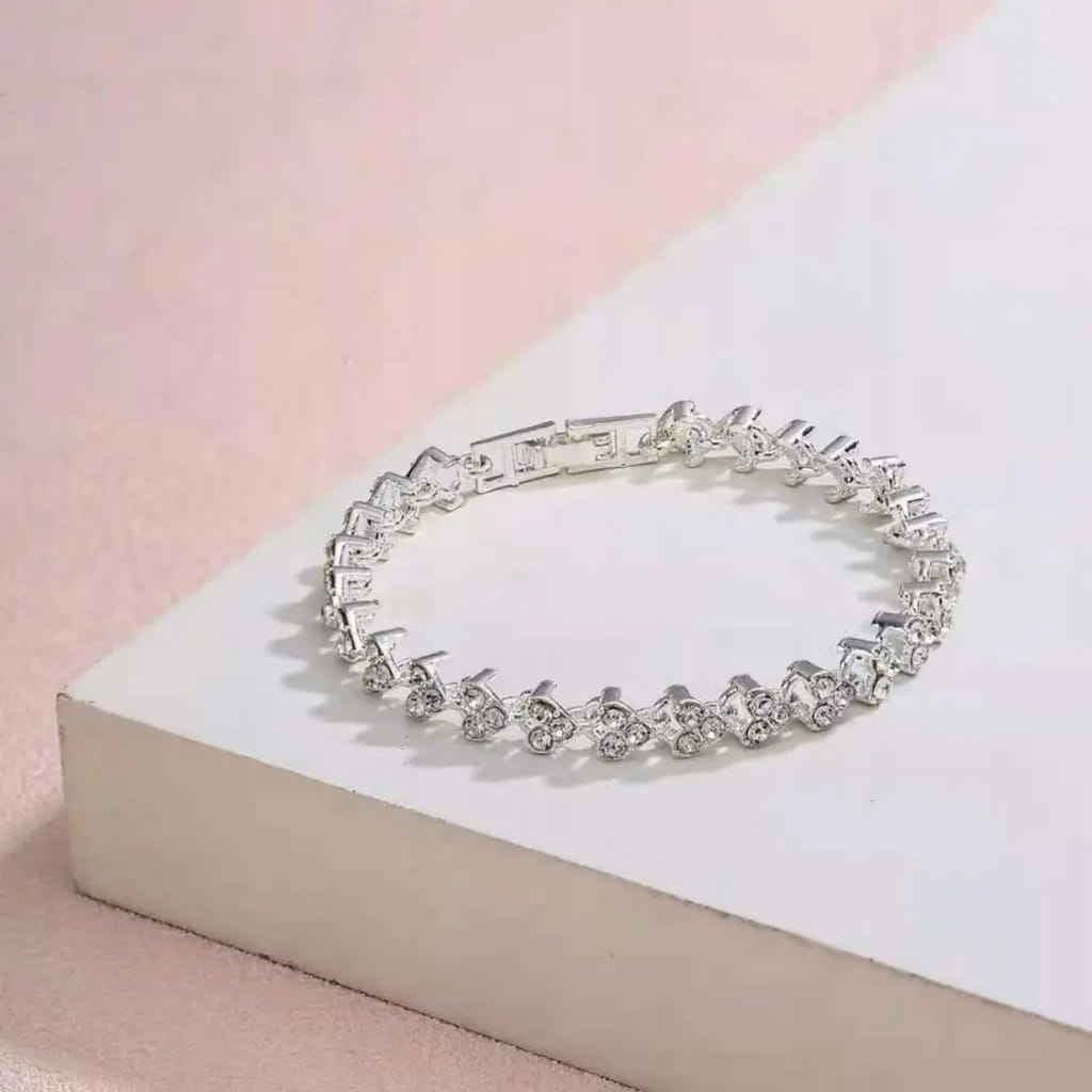 ✅ Posrebrzana bransoletka ozdobiona błyszczącymi kamyczkami, imitującymi cyrkonie/