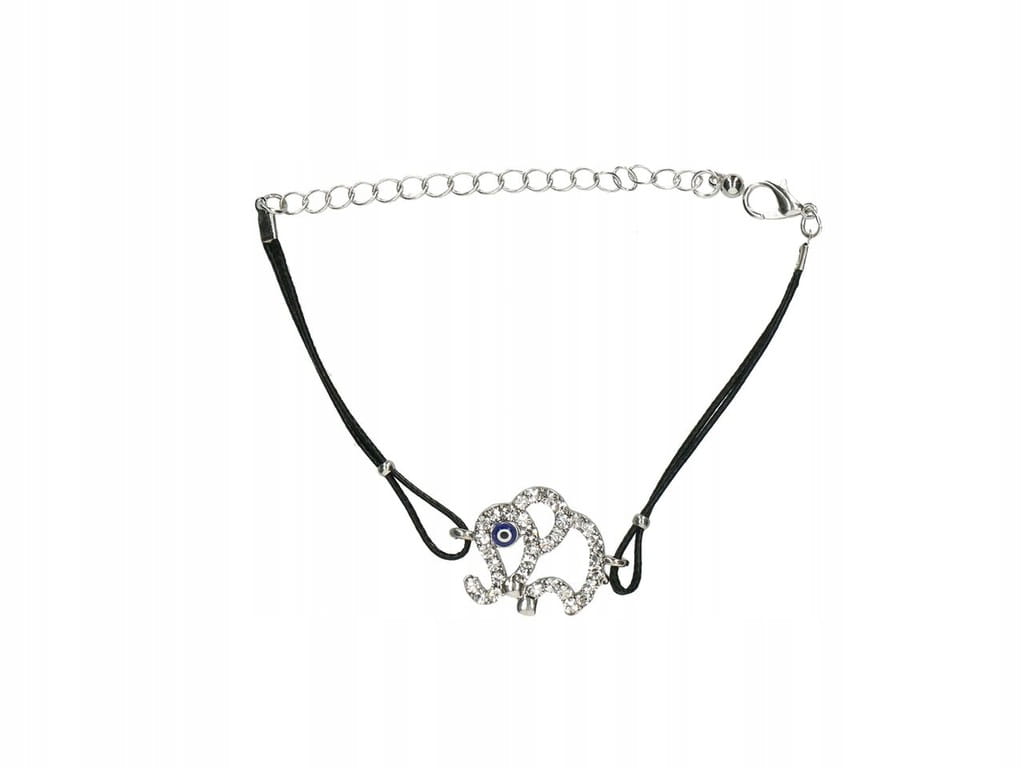 ✅ Sznurkowa czarna bransoletka ozdobiona słonikiem.