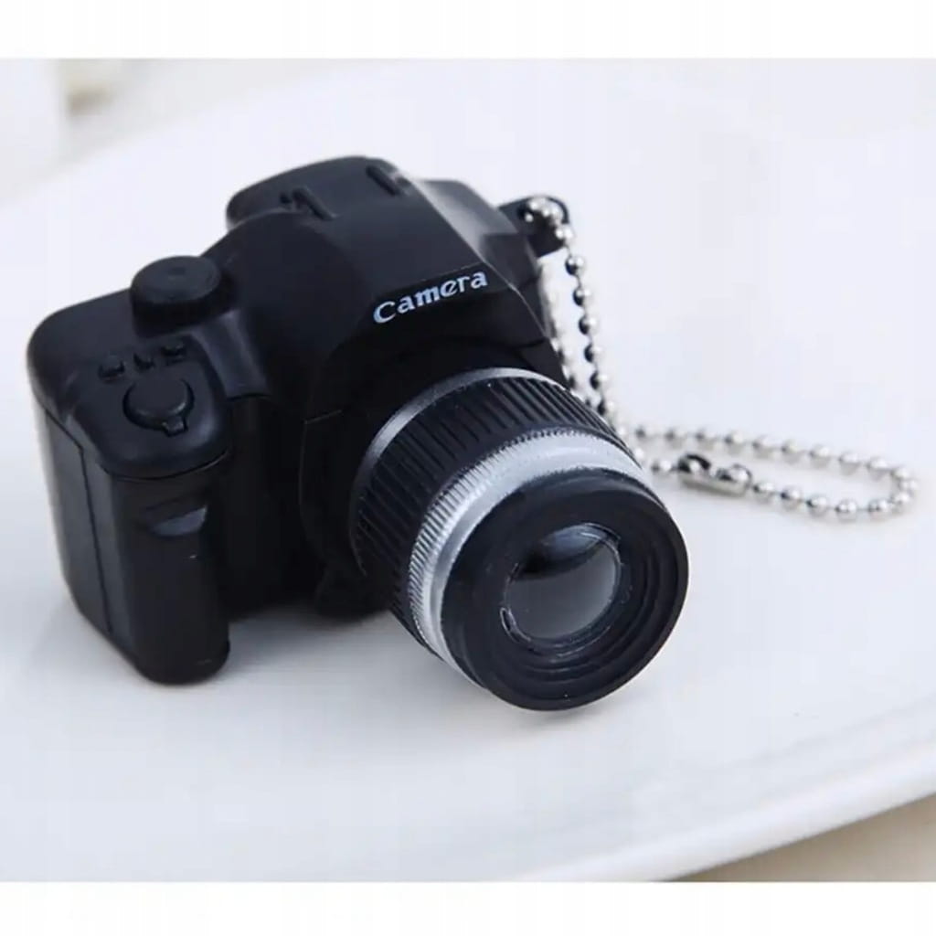✅Breloczek posiada baterię, po naciśnięciu przycisku wydaje odgłos otwierającej się migawki i błyska lampa - imituje robienie zdjęć.