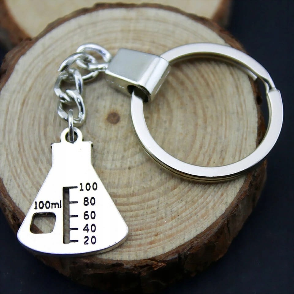 ✅ Elegancki breloczek w kształcie chemicznej menzurki.