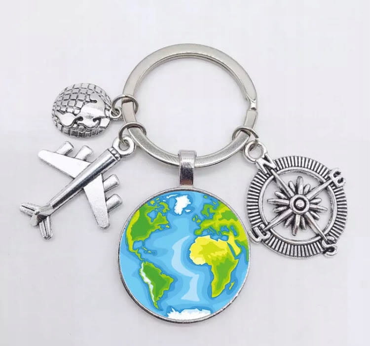 ✅ Elegancki breloczek dla podróżnika, ozdobiony tematycznymi zawieszkami.