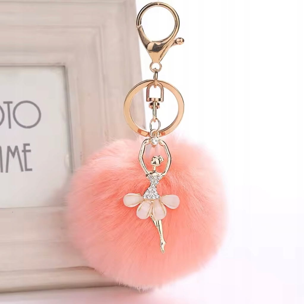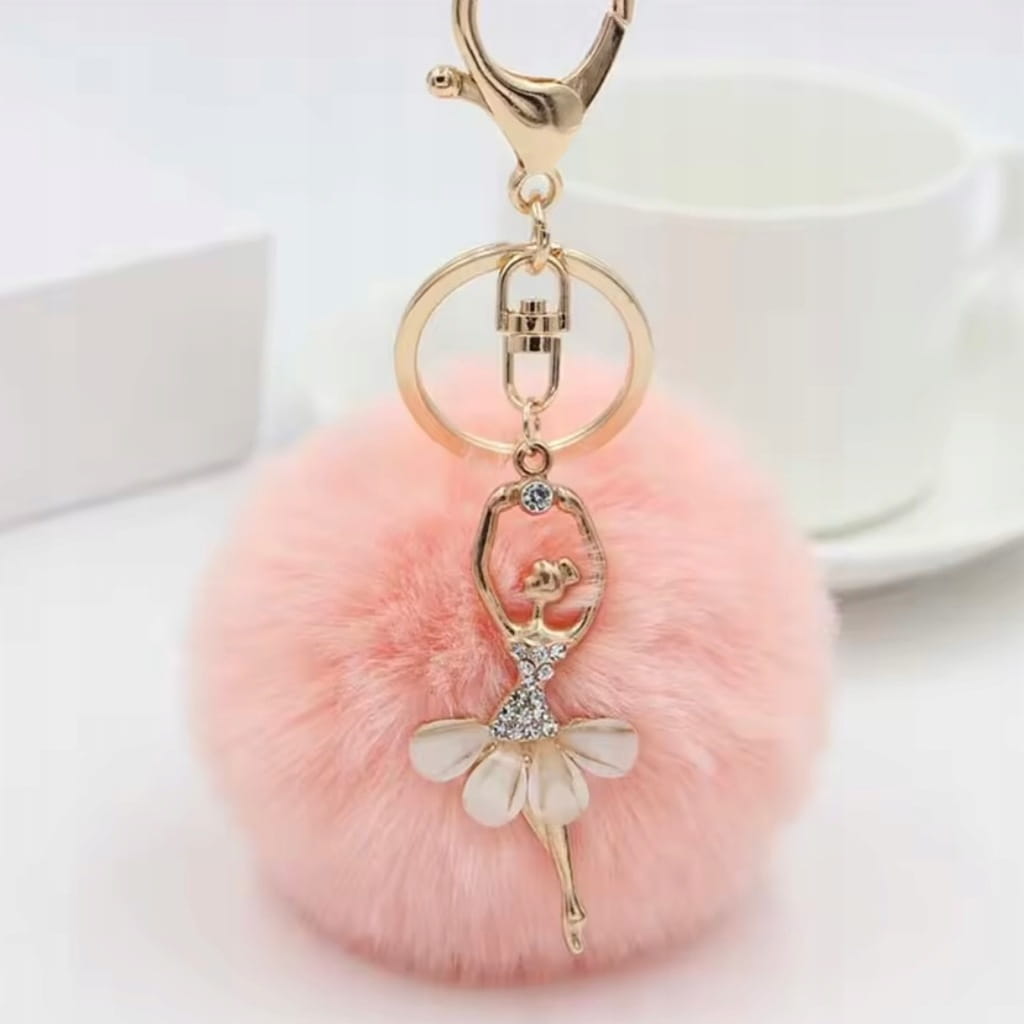 ✅ Bardzo efektowny breloczek z puszystym pomponikiem i figurką w kształcie tancerki.