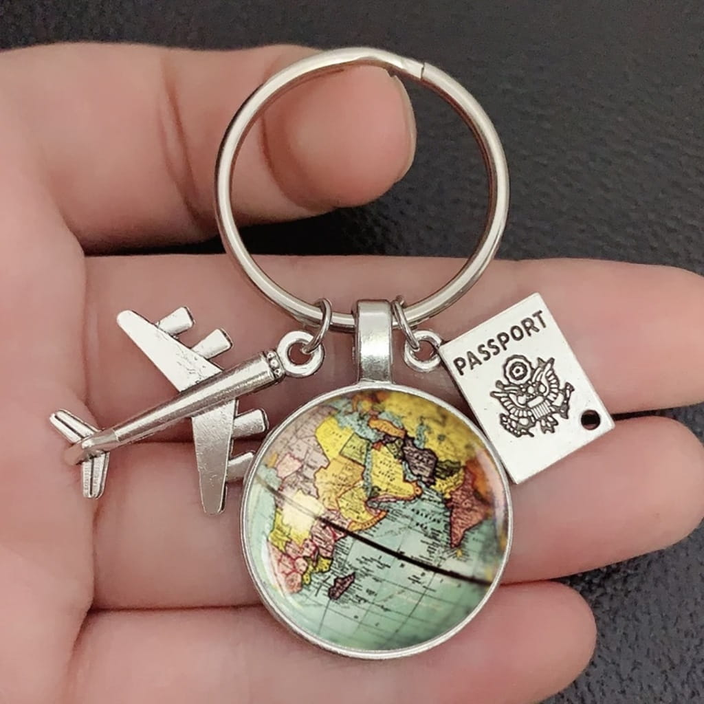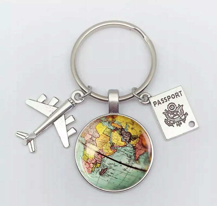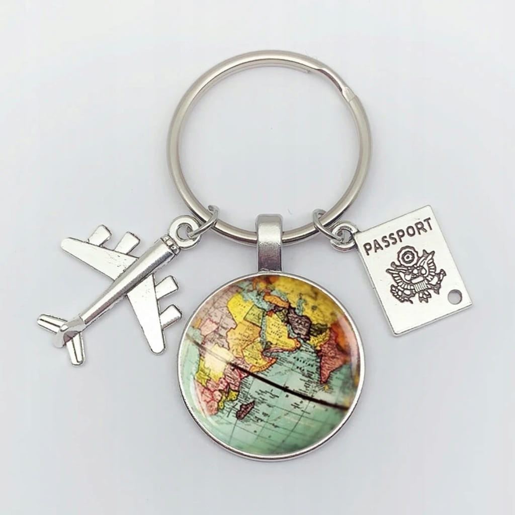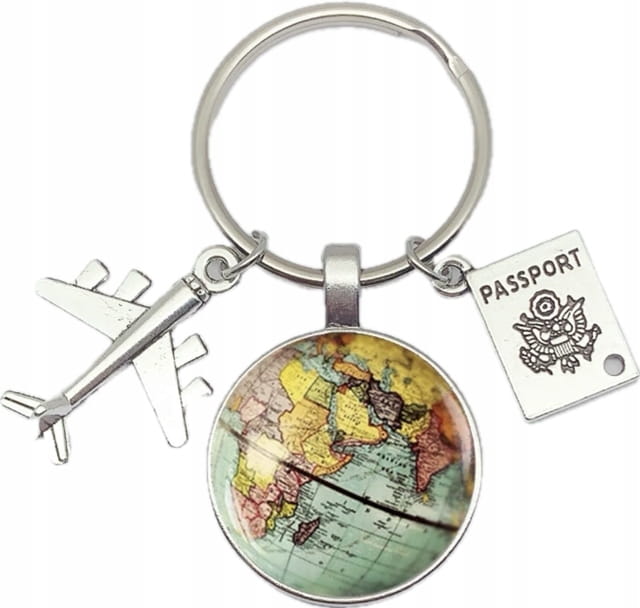 ✅ Elegancki breloczek dla podróżnika, ozdobiony tematycznymi zawieszkami.