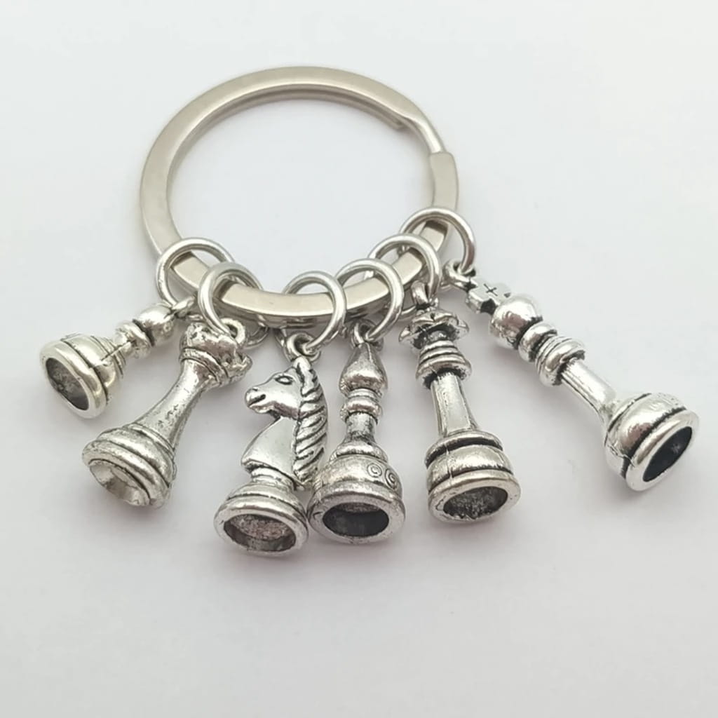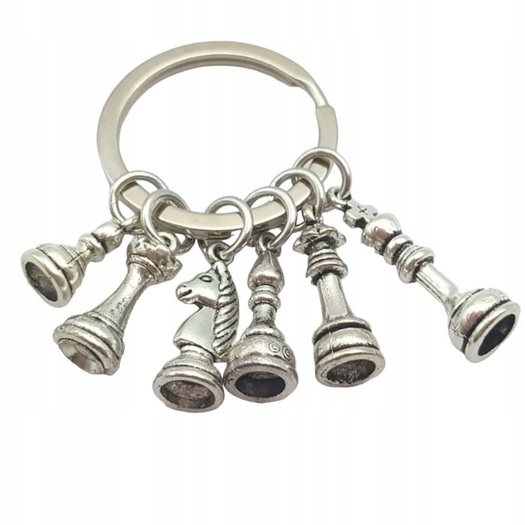 ✅ Elegancki breloczek ozdobiony zawieszkami w kształcie figur szachowych.