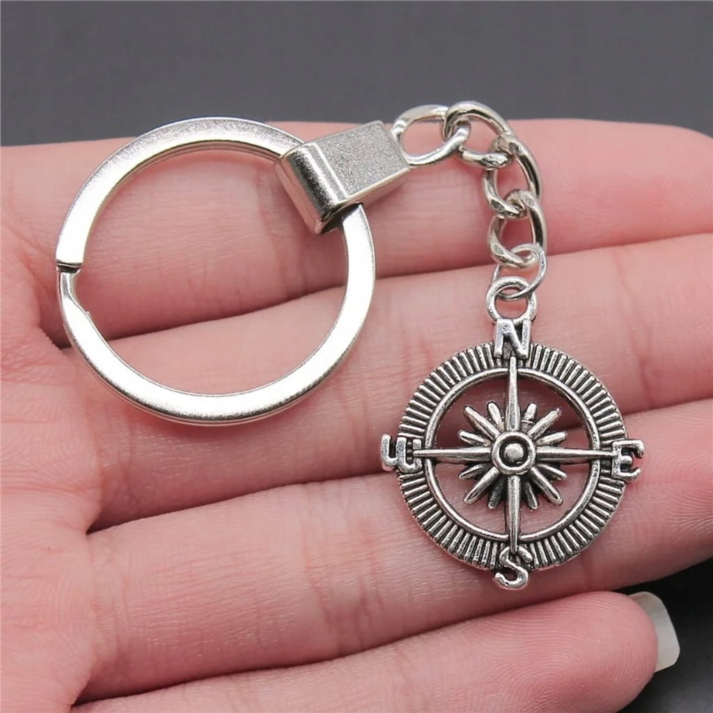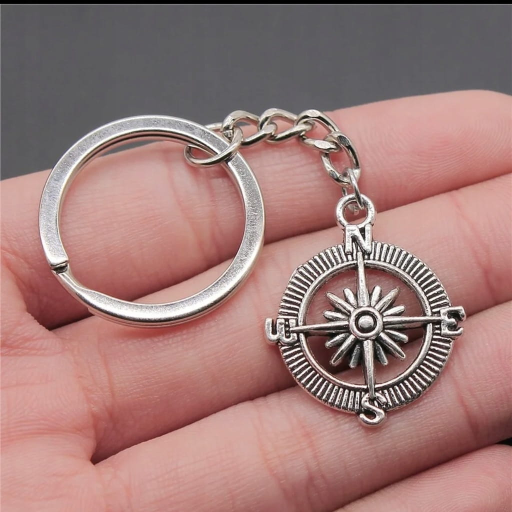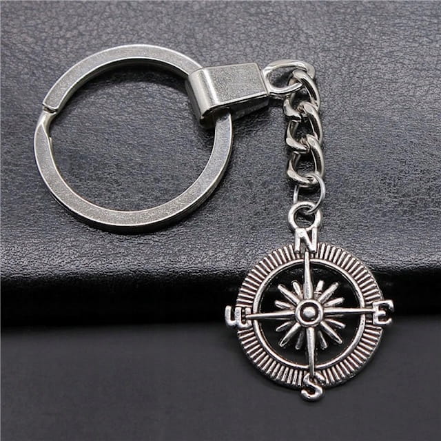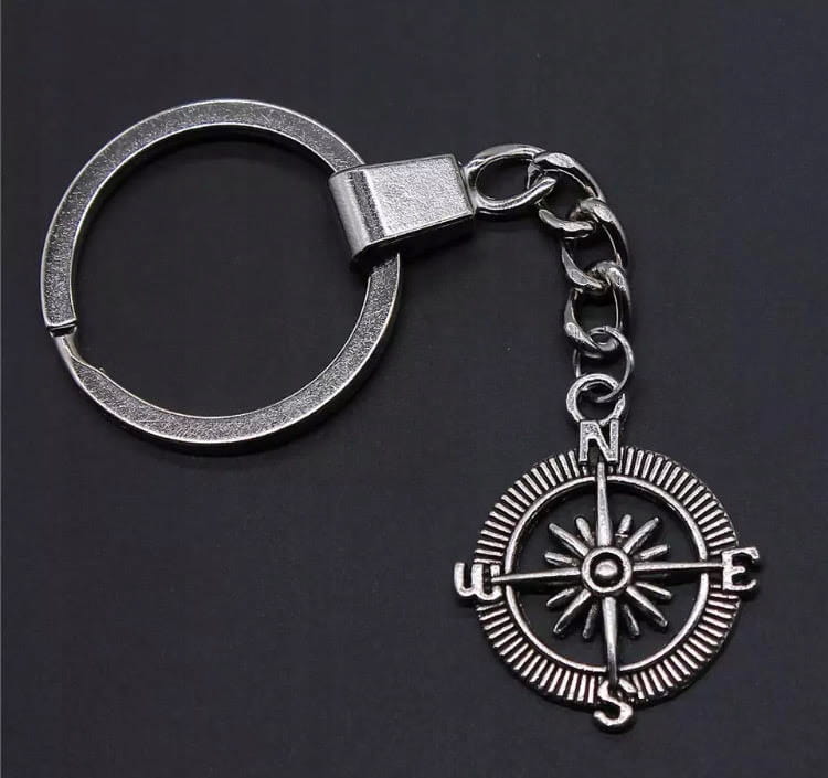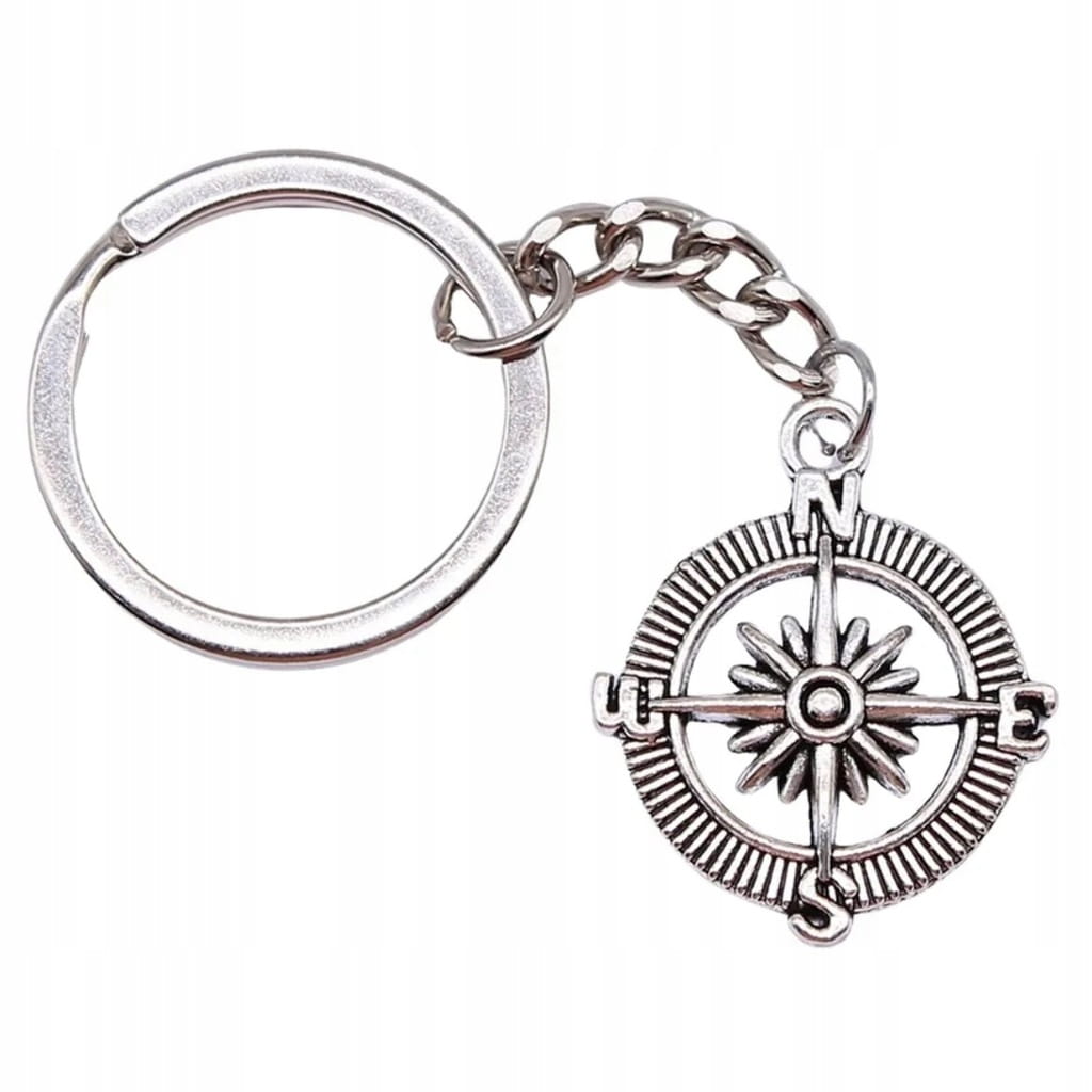 ✅ Elegancki breloczek ozdobiony zawieszką w kształcie kompasu.