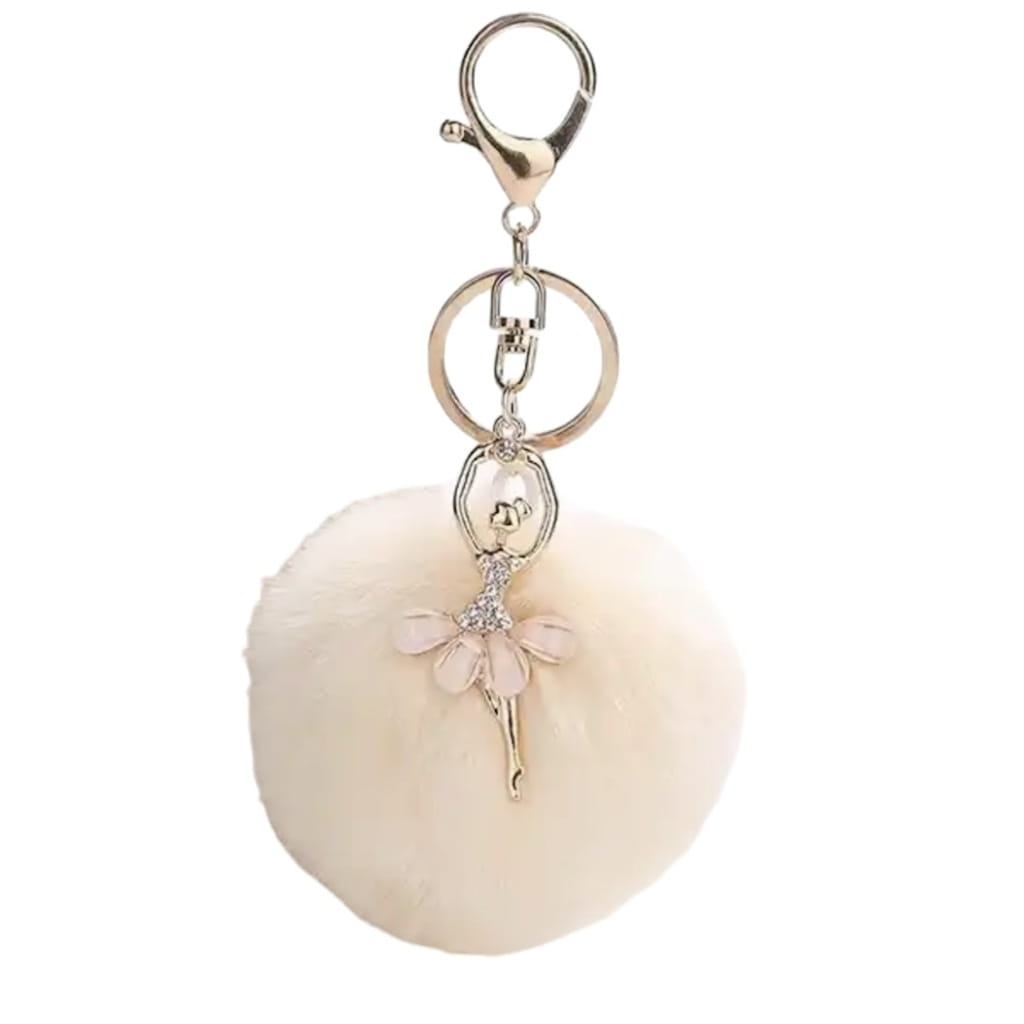 Breloczek tancerka pompon futerko brelok kremowy brylok prezent 301