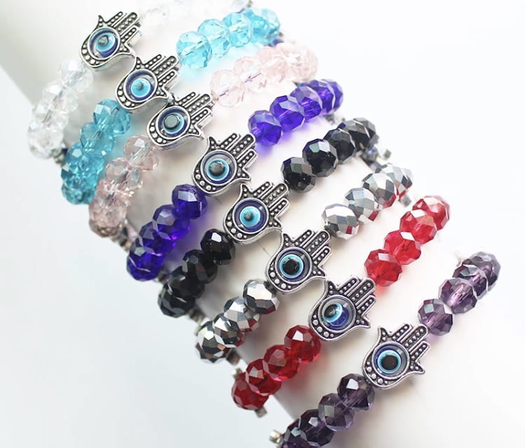 Przedmiotem aukcji jest doskonała na prezent, widoczna na zdjęciu turecka bransoletka - amulet z rękami fatimy i evil eye składająca się z czarnych koralików, rozciągana - na gumce. Oko proroka i hamsa według tradycji chronić mają przed urokiem oraz złym i zazdrosnym spojrzeniem.