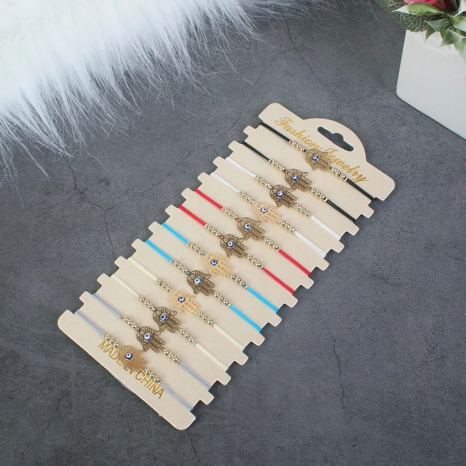 Przedmiotem aukcji jest bransoletka z hamsą i okiem proroka. Kolor sznurka: czarny.