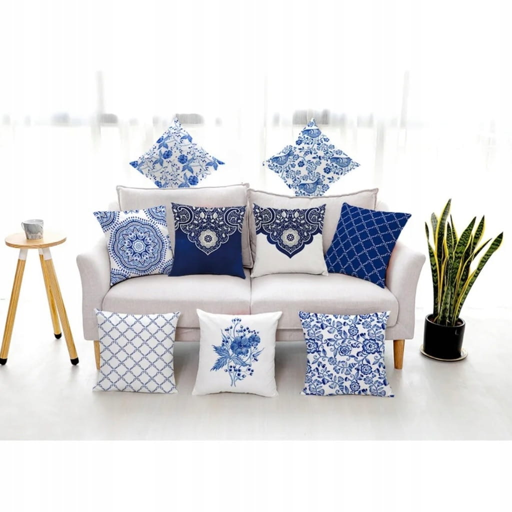 Dekoracyjna poszewka na poduszkę turecka turecki wzór biała granatowa 17