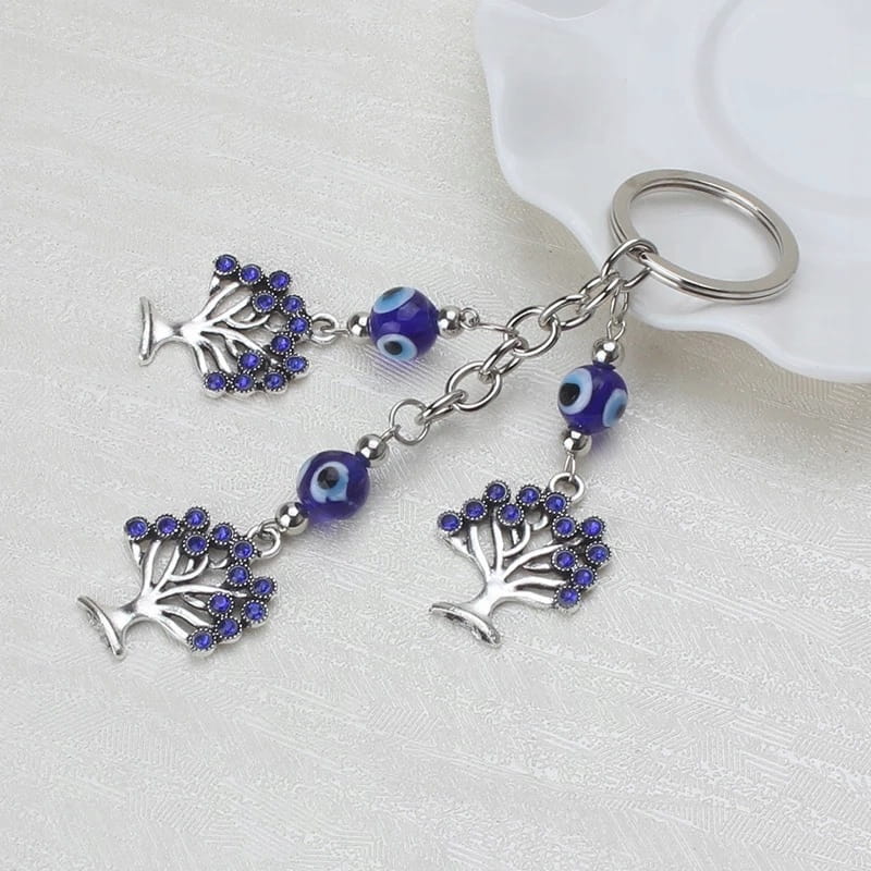 Przedmiotem aukcji jest doskonały na prezent elegancki breloczek z drzewami. Ozdobiony okiem proroka (co widoczne jest na zdjęciu), według tureckiej tradycji ludowej chronić ma przed złym i zazdrosnym spojrzeniem nieprzychylnych nam osób. Można przypiąć go do kluczy lub jako ozdobny dodatek w dowolne inne miejsce, np. do suwaka od torebki.