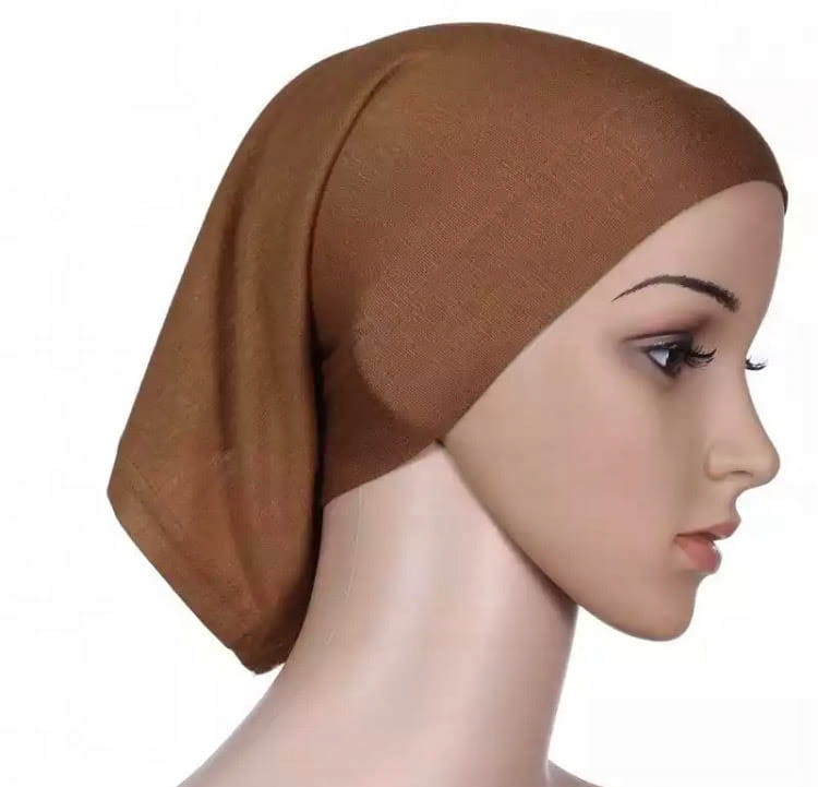 Doskonały na prezent, widoczny na zdjęciu wkład pod chustkę na głowę dla muzułmanki w kolorze BRĄZOWYM służący do przytrzymywania włosów.