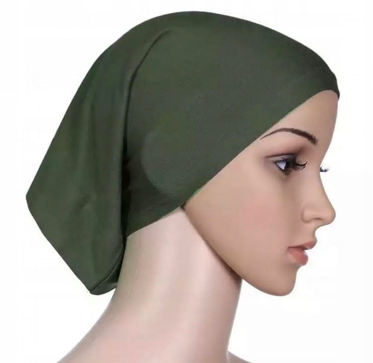 Doskonały na prezent, widoczny na zdjęciu wkład pod chustkę na głowę dla muzułmanki w kolorze CIEMNOZIELONYM służący do przytrzymywania włosów.