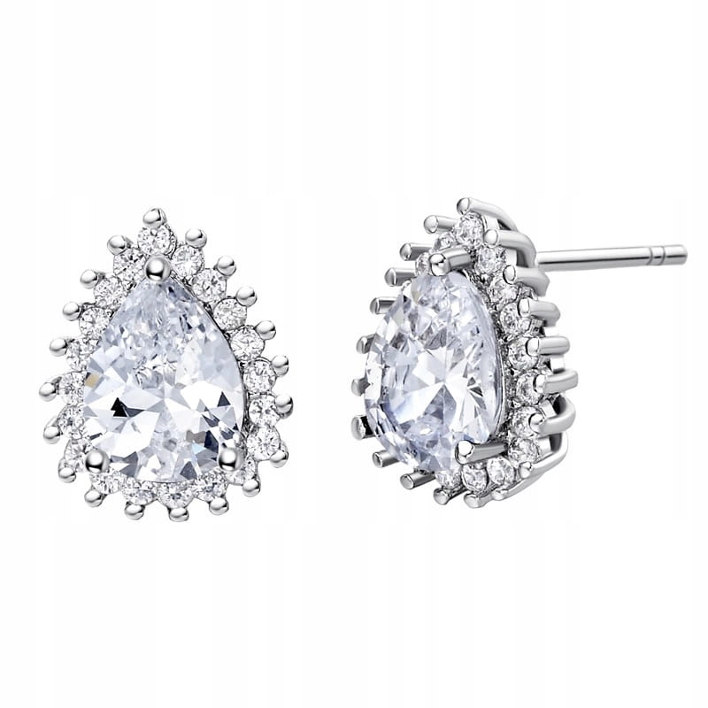 Przedmiotem aukcji są doskonałe na prezent, widoczne na zdjęciu olśniewające damskie kolczyki w kolorze srebrno-białym z kamieniami przypominającymi cyrkonie. Malutkie, delikatne kolczyki zapinane są na sztyft. Doskonałe na wieczorowe wyjścia, świetnie dopasują się do eleganckiego stroju.