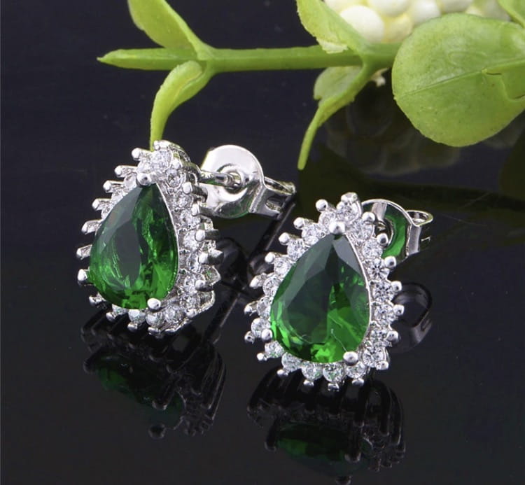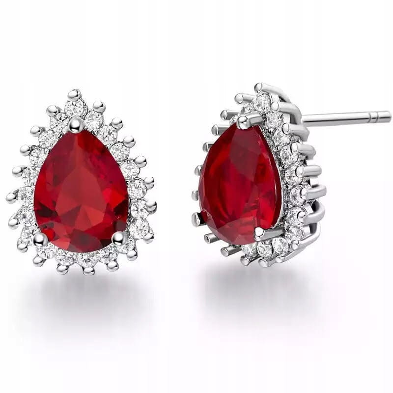 Przedmiotem aukcji są doskonałe na prezent, widoczne na zdjęciu olśniewające damskie kolczyki w kolorze srebrno-czerwonym z kamieniami przypominającymi cyrkonie. Malutkie, delikatne kolczyki zapinane są na sztyft. Doskonałe na wieczorowe wyjścia, świetnie dopasują się do eleganckiego stroju.