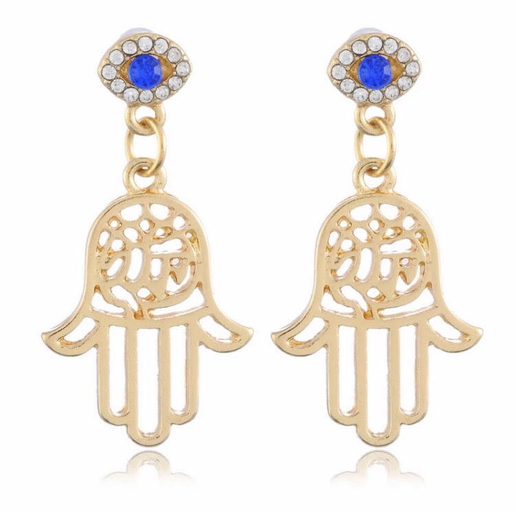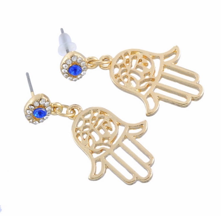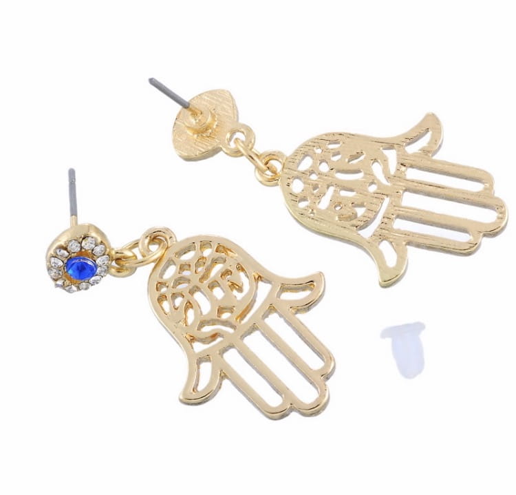 Kolczyki pozłacane hamsa ręka fatimy evil eye 21