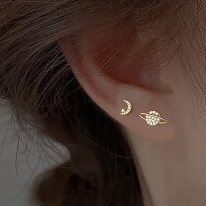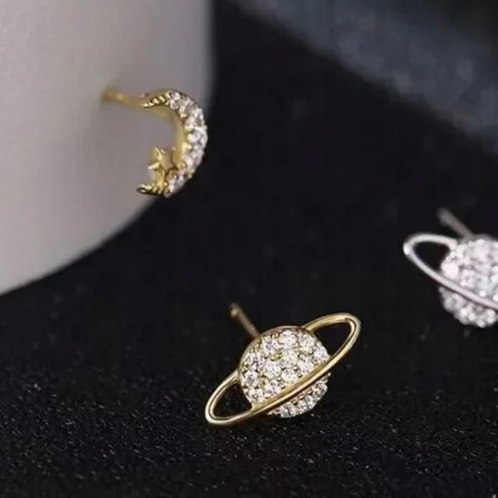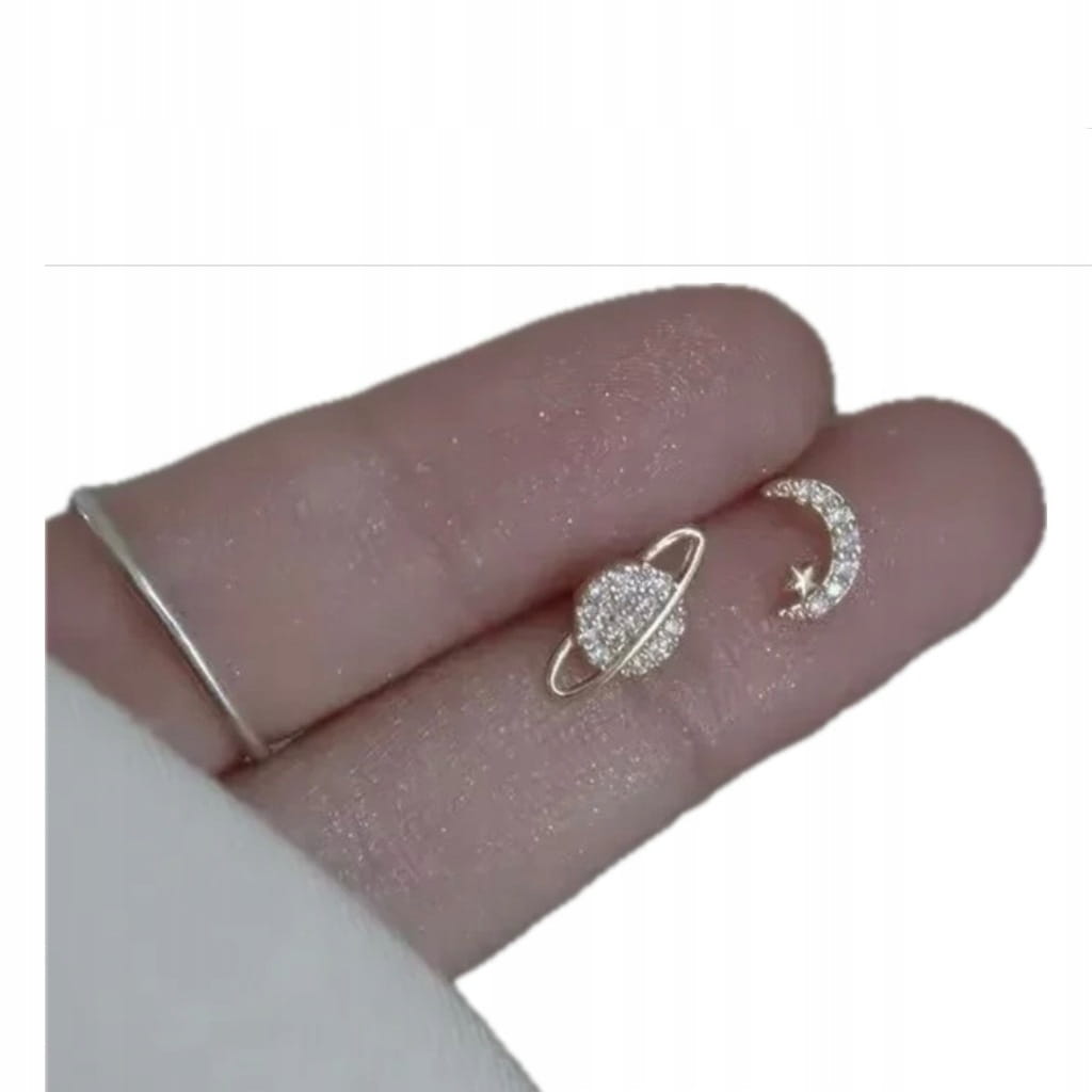 ✅Delikatne i eleganckie kolczyki w kształcie półksiężyca z gwiazdką i planety.