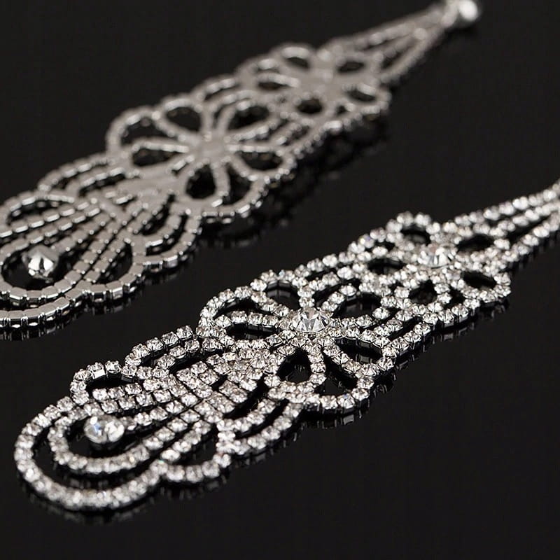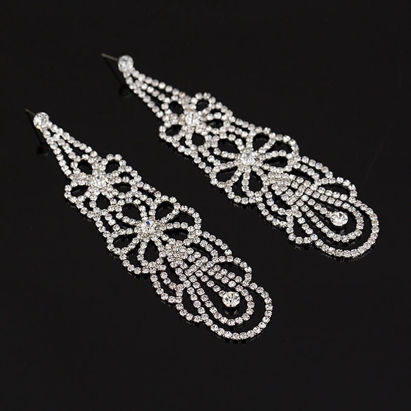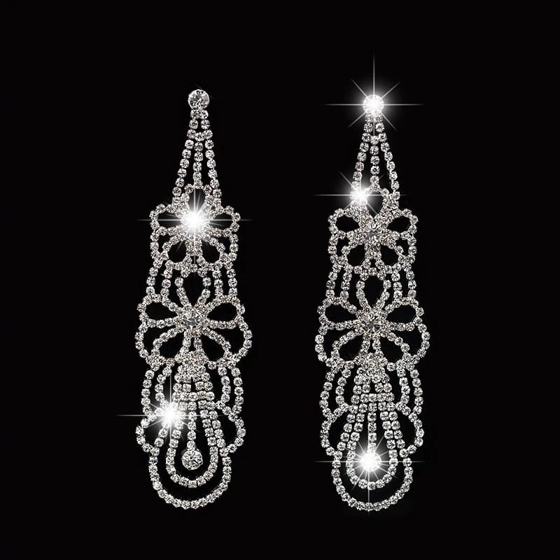 Przedmiotem aukcji są doskonałe na prezent, widoczne na zdjęciu olśniewające damskie kolczyki z kamieniami przypominającymi cyrkonie. Wiszące kolczyki zapinane są na sztyft. Doskonałe na wieczorowe wyjścia, świetnie dopasują się do eleganckiego stroju.