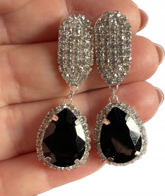 ✅Eleganckie i bardzo efektowne, posrebrzane kolczyki z czarnym oczkiem.
