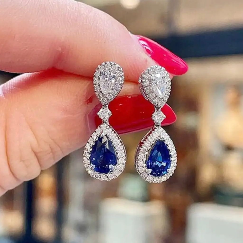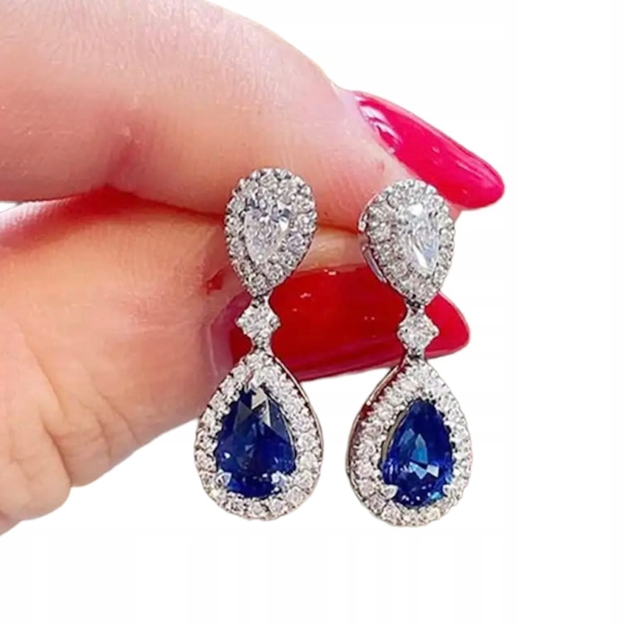 Kolczyki wiszące Hurrem szafirowe srebrne eleganckie na wesele 104