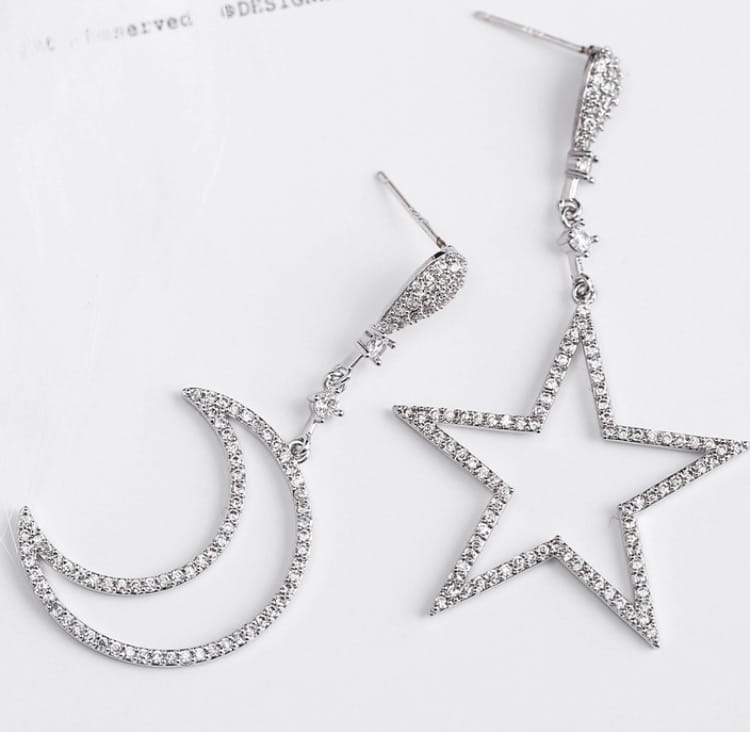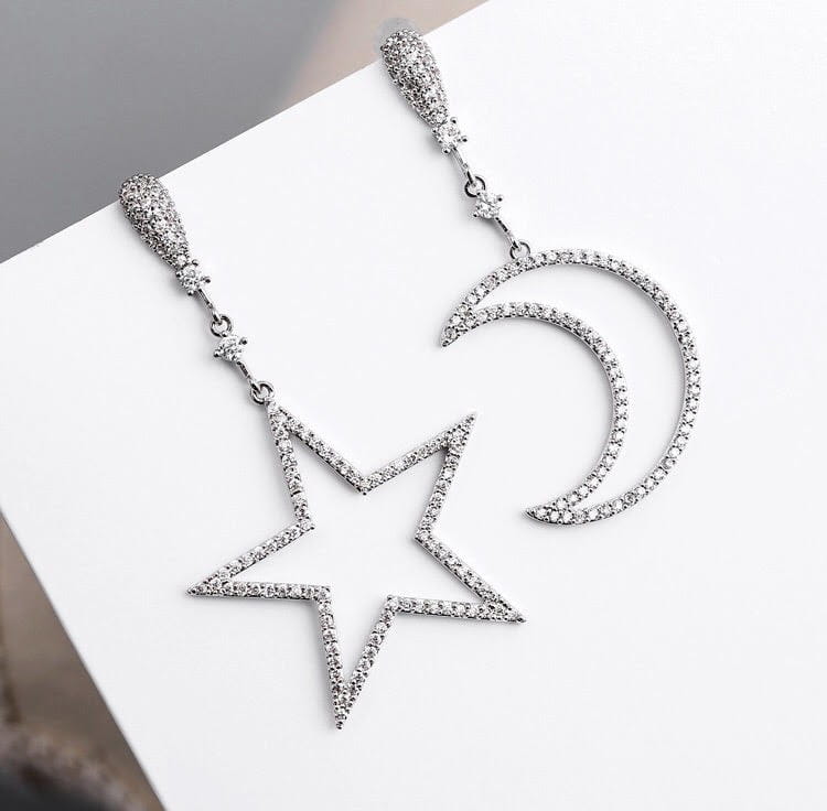 Kolczyki wiszące gwiazda i półskiężyc cyrkonie 35
