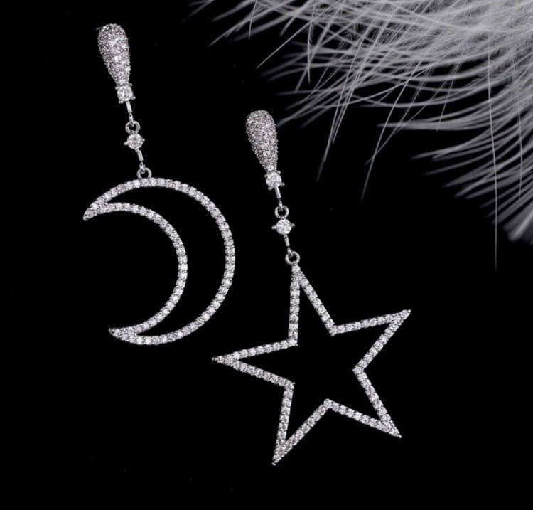 Przedmiotem aukcji są doskonałe na prezent, widoczne na zdjęciu olśniewające damskie wiszące kolczyki w kolorze srebrnym z kamieniami przypominającymi cyrkonie. Kolczyki zapinane są na sztyft. Gwiazda i półksiężyc to symbole Turcji pochodzące z flagi Republiki Tureckiej. Doskonałe na wieczorowe wyjścia, świetnie dopasują się do eleganckiego stroju.