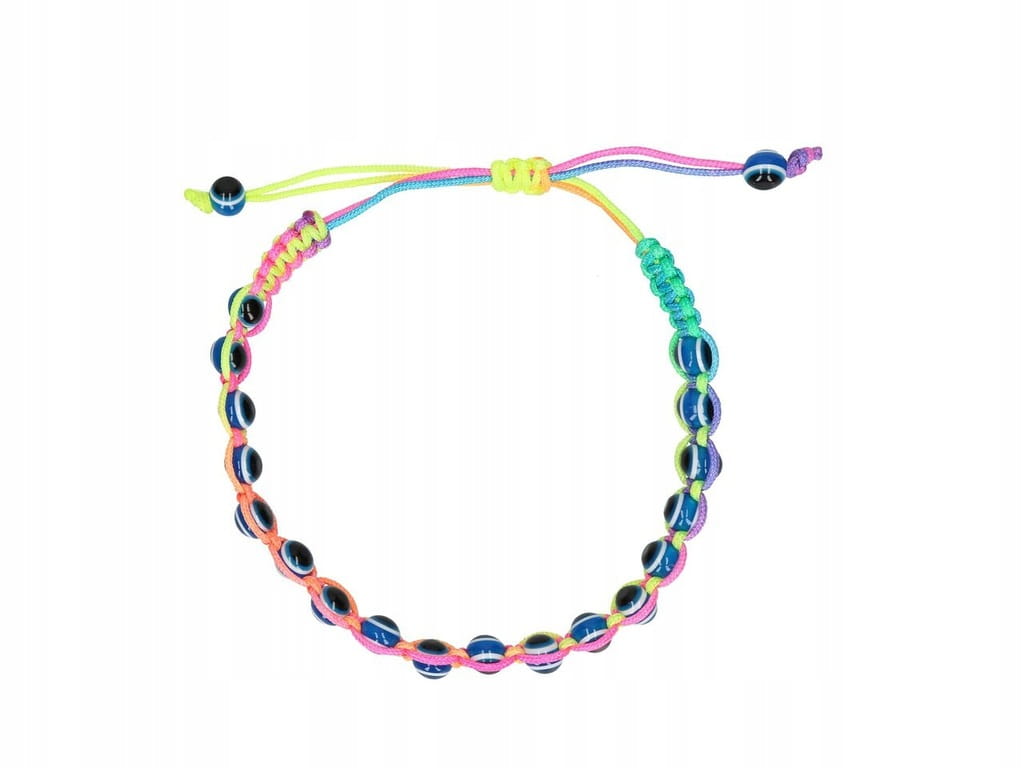 TURECKA SZNURKOWA BRANSOLETKA OKO EVIL EYE - TĘCZOWA.