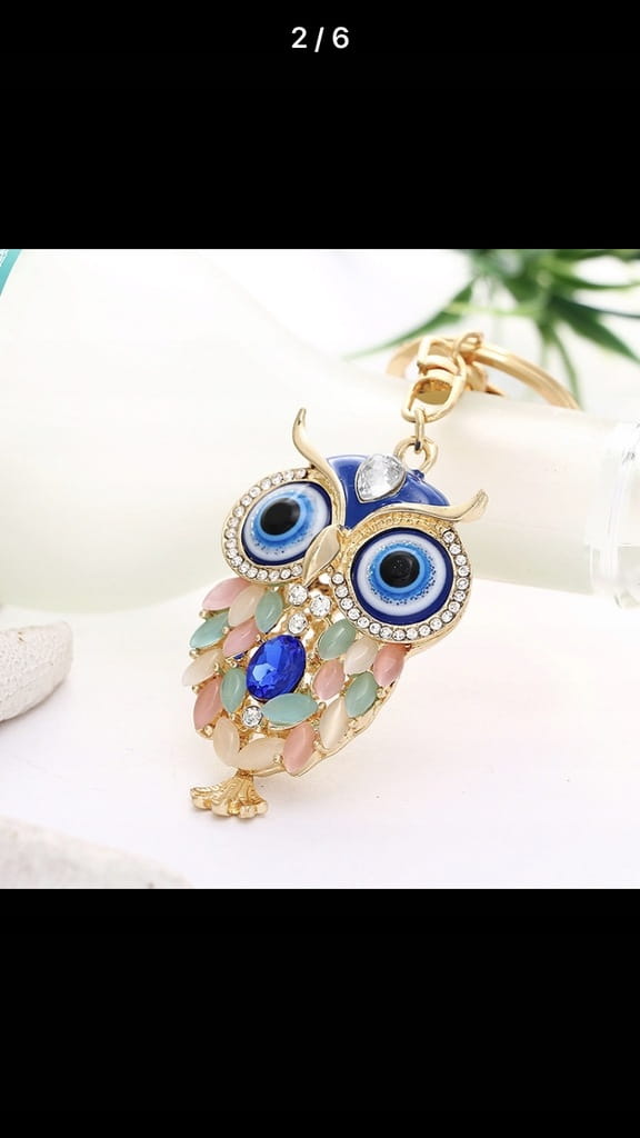 Przedmiotem aukcji jest doskonały na prezent elegancki breloczek sowa w odcieniu różowym. Jeżeli potrzebują Państwo innego koloru, zapraszmay na inne nasze aukcje. Ozdobiony okiem proroka (co widoczne jest na zdjęciu), według tureckiej tradycji ludowej chronić ma przed złym i zazdrosnym spojrzeniem nieprzychylnych nam osób. Można przypiąć go do kluczy lub jako ozdobny dodatek w dowolne inne miejsce, np. do suwaka od torebki. Posiada karabińczyk.