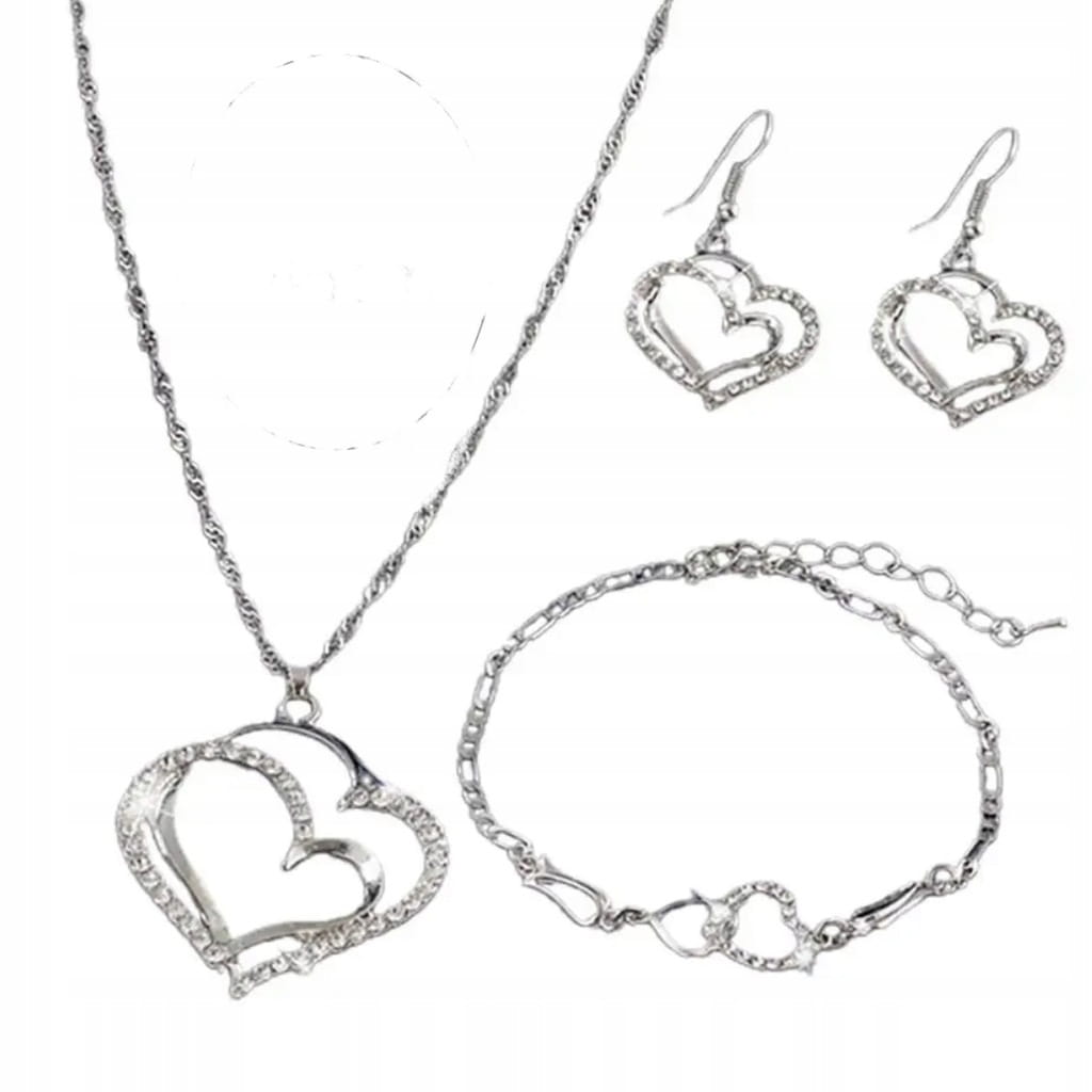 Komplet biżuterii serca w kolorze srebrnym 53