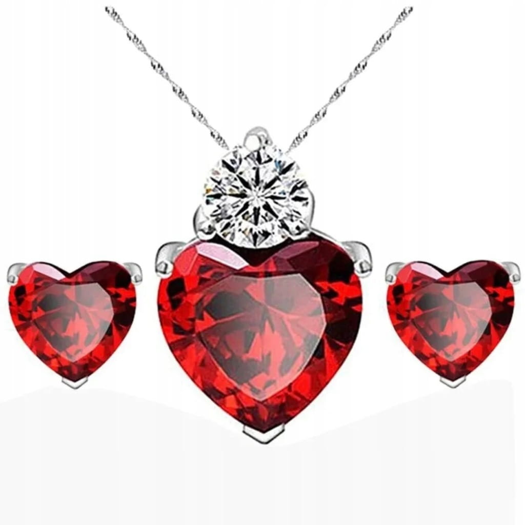 ZESTAW POSREBRZANEJ BIŻUTERII CZERWONE SERCA.