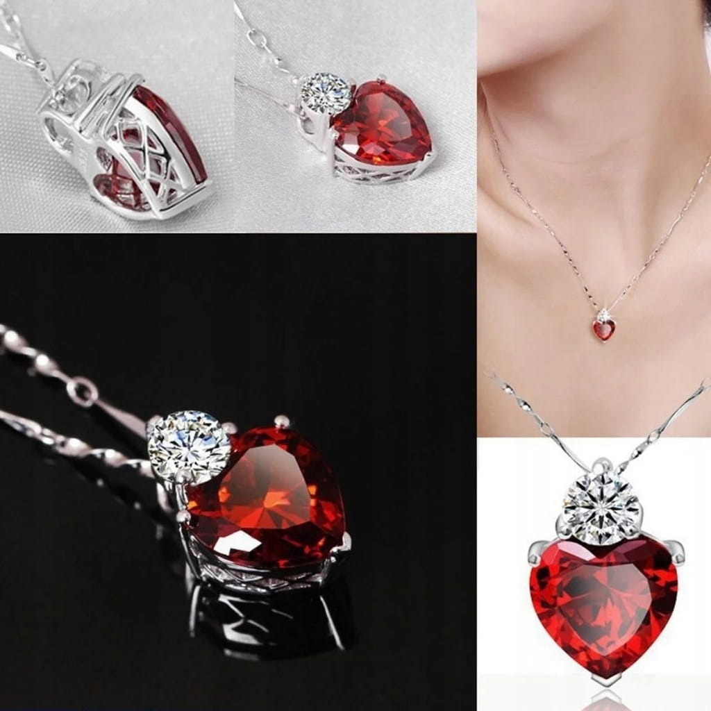 Komplet biżuterii serce serduszko wisiorek kolczyki Walentynki czerwony 57