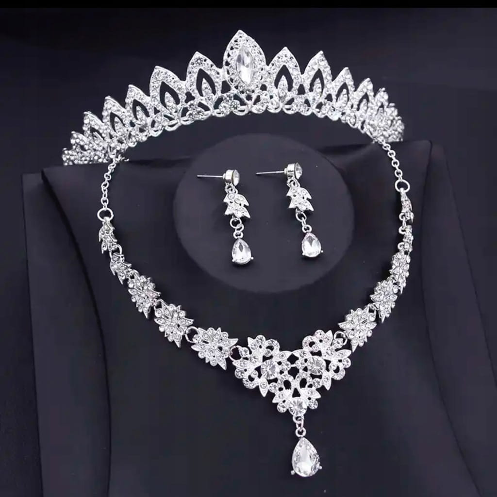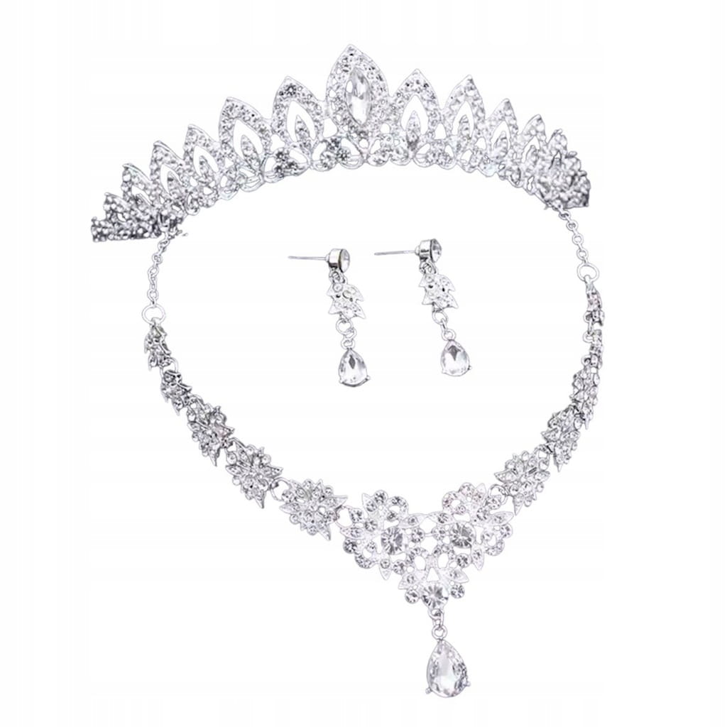 ✅W skład zestawu wchodzi kolia na szyję, wiszące kolczyki oraz diadem na głowę.
