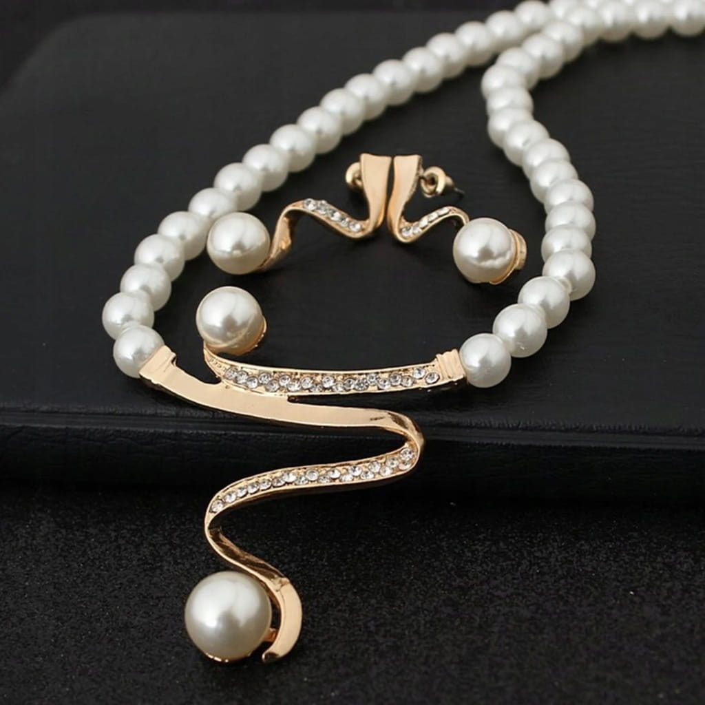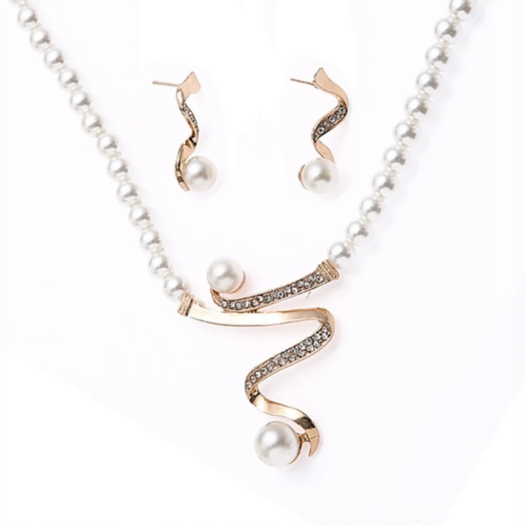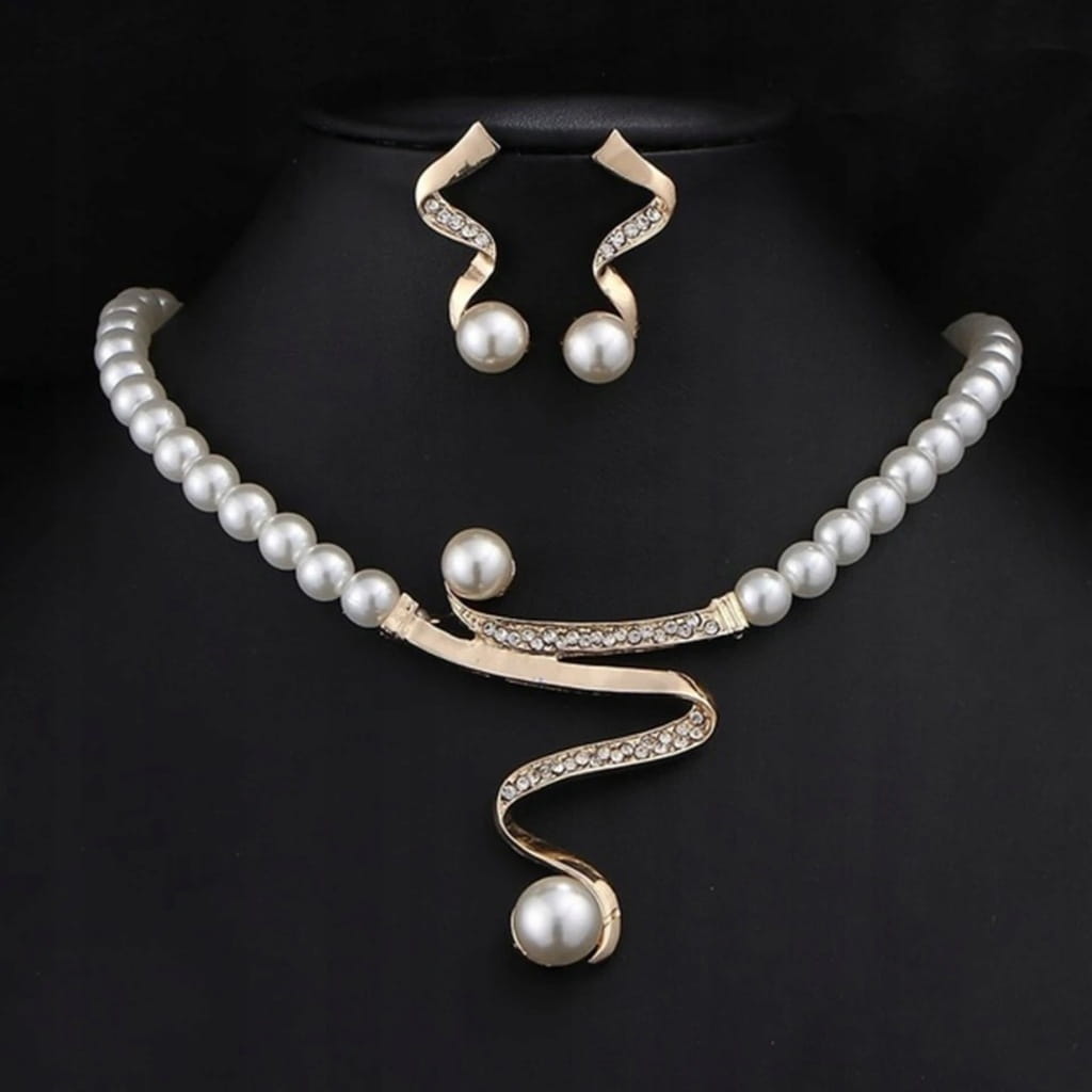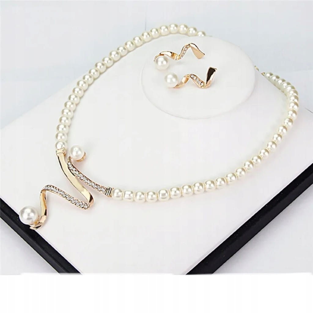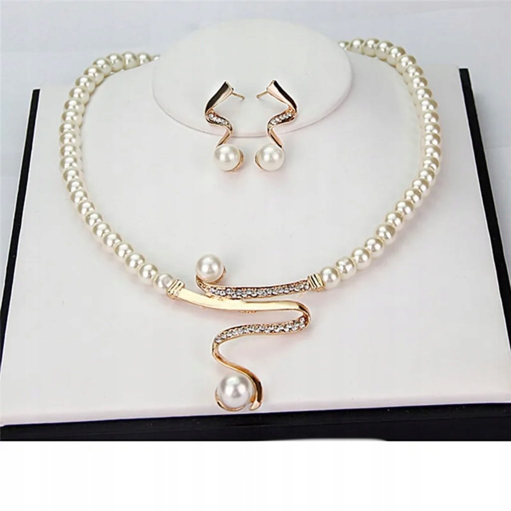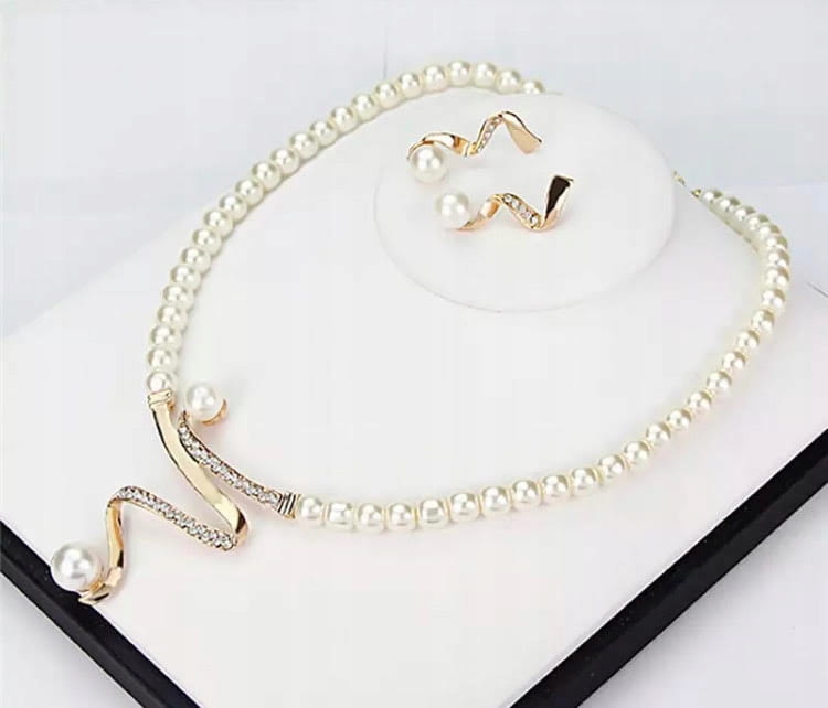 Doskonały na prezent, widoczny na zdjęciu elegancki zestaw biżuterii składający się z naszyjnika i kolczyków.