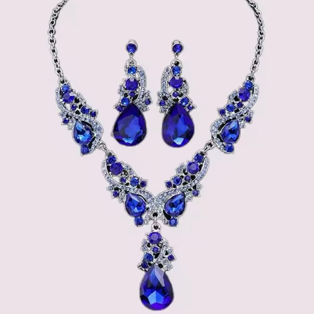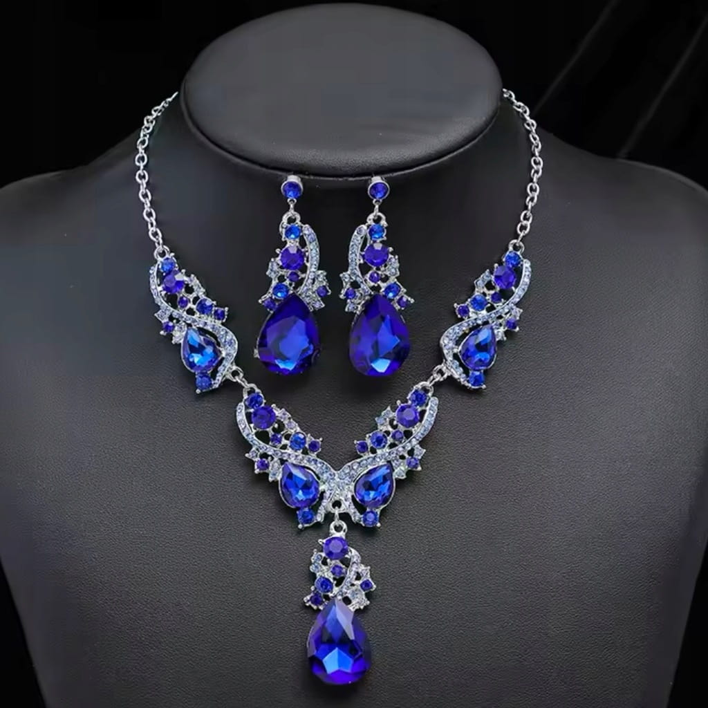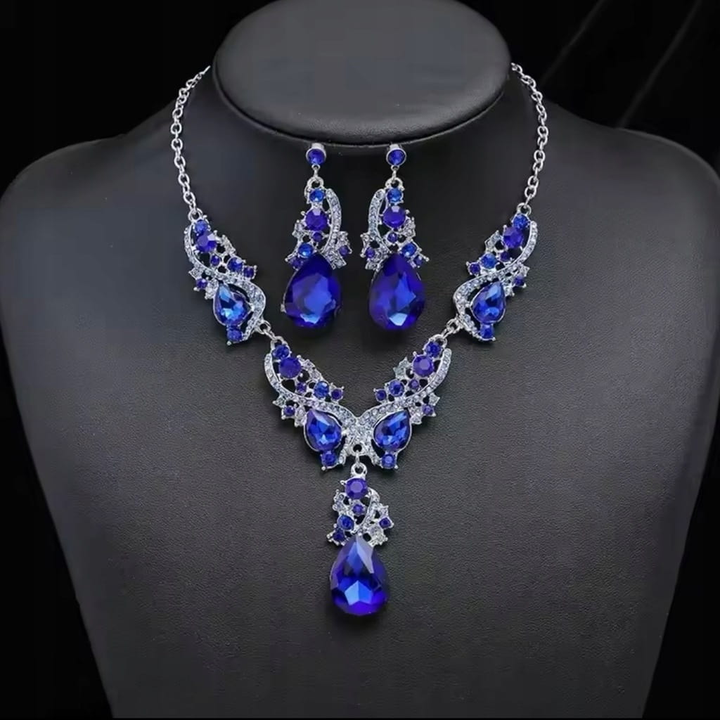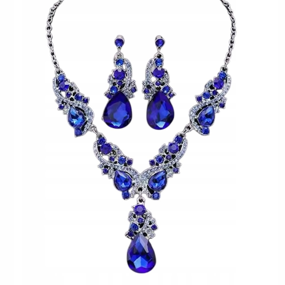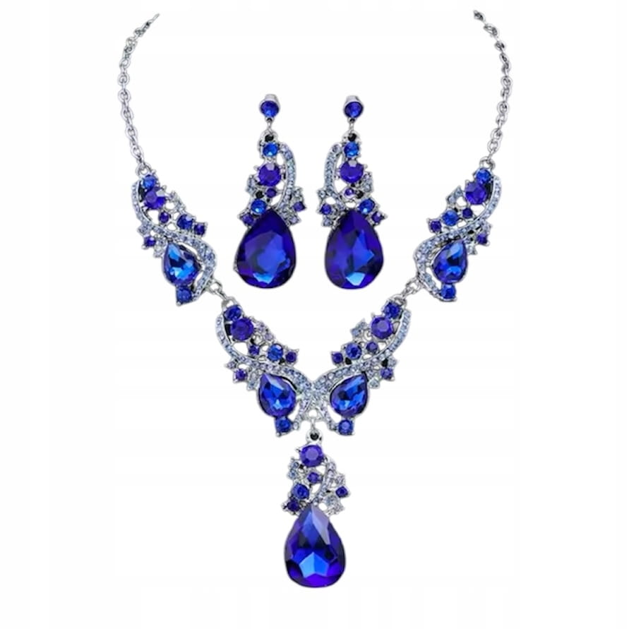 Komplet biżuterii tureckiej naszyjnik kolia kolczyki szafirowy prezent 44
