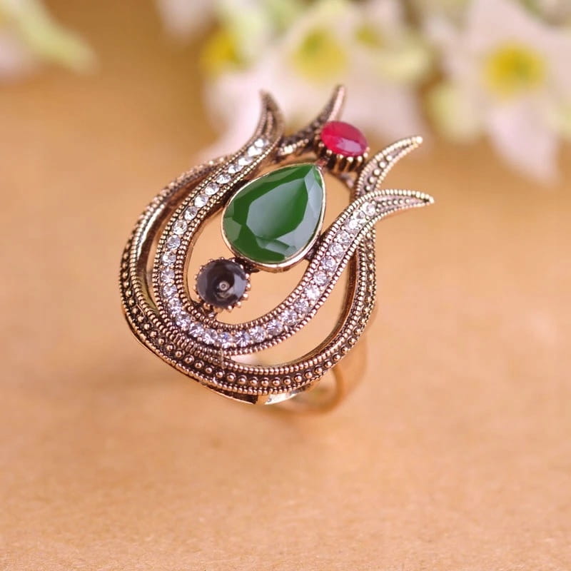 ✅ Zestaw tureckiej biżuterii w złotym kolorze z zielonymi kamyczkami.