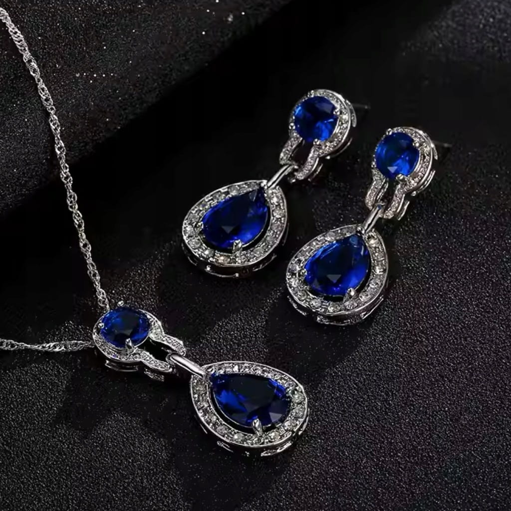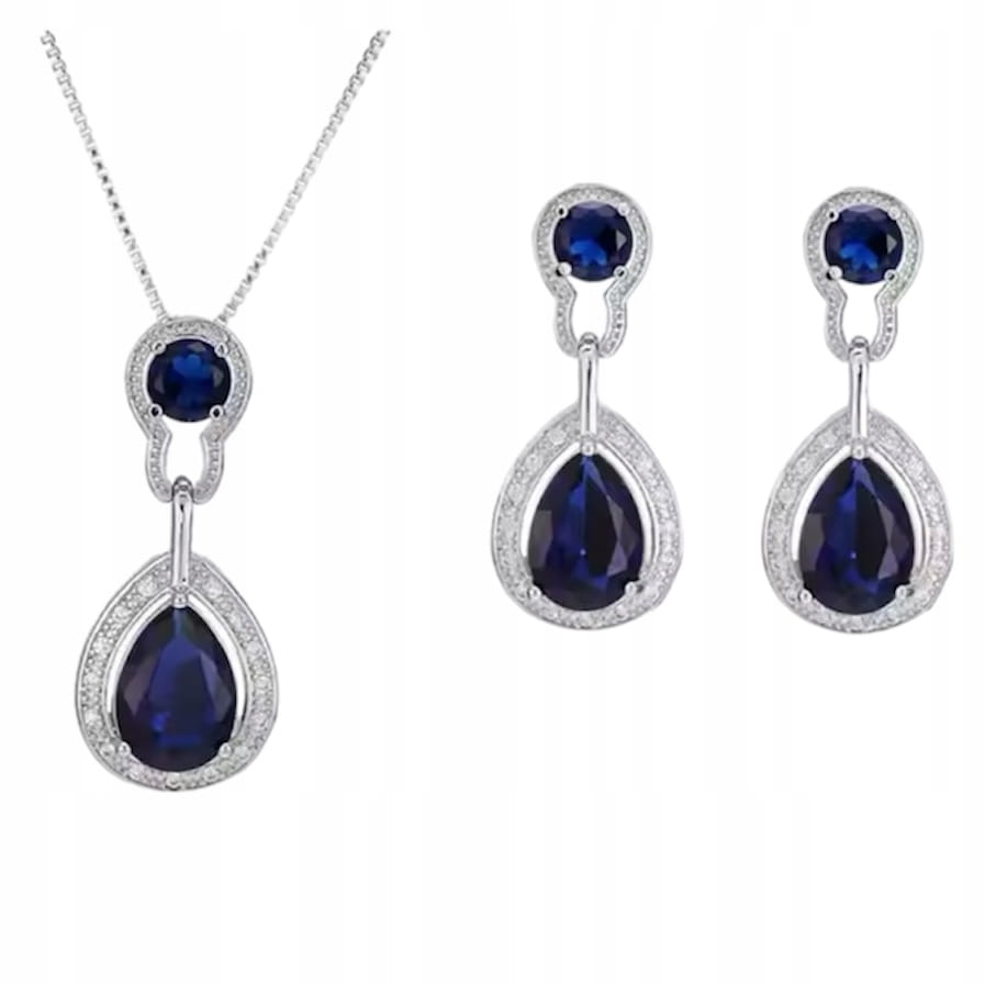 ✅ Zestaw tureckiej posrebrzanej biżuterii z szafirowymi oczkami.