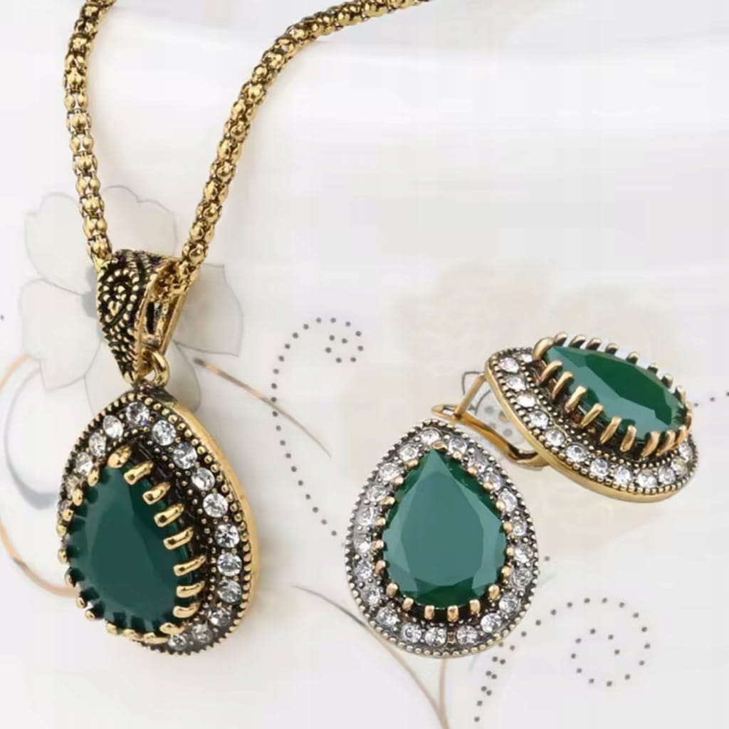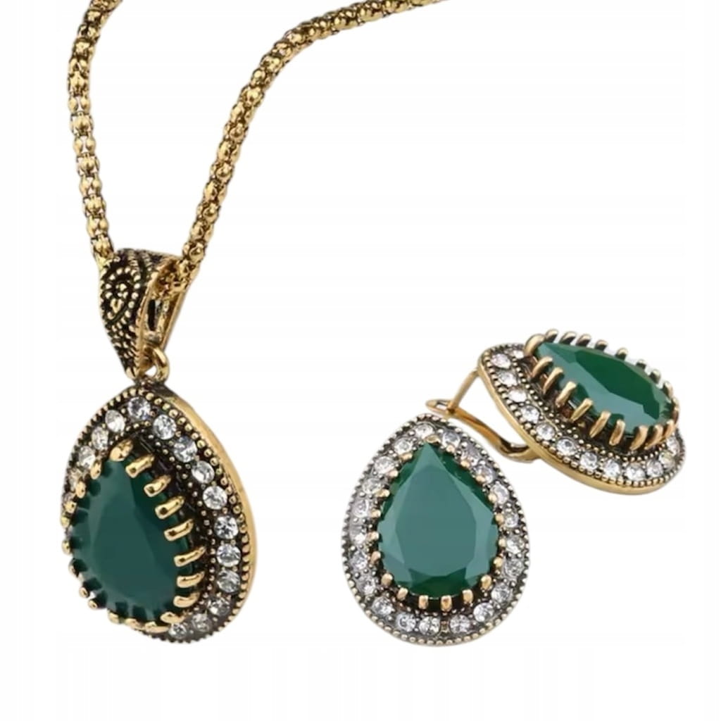 Komplet Biżuterii Tureckiej z Zielonym Oczkiem Hurrem, Wspaniałe Stulecie.