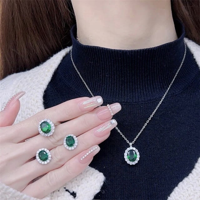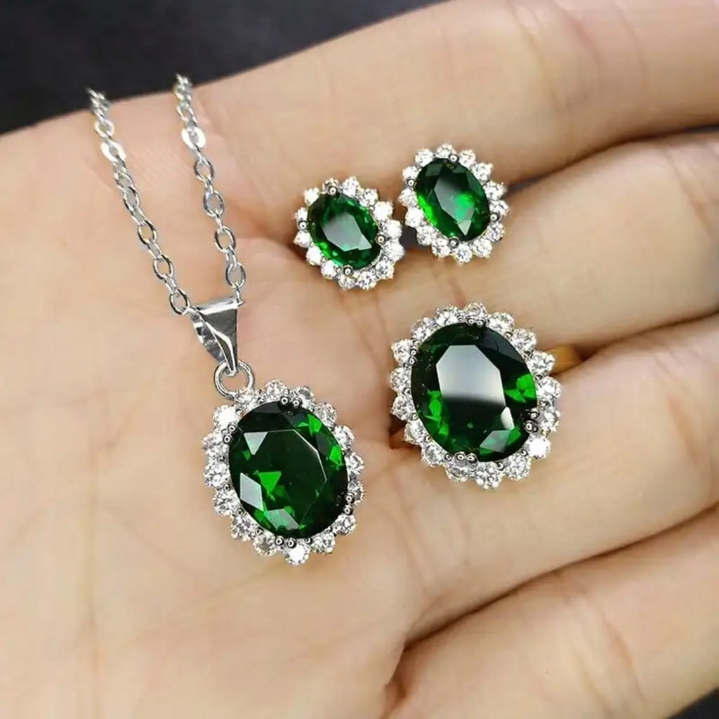 ✅ Zestaw tureckiej posrebrzanej biżuterii z zielonymi oczkami.