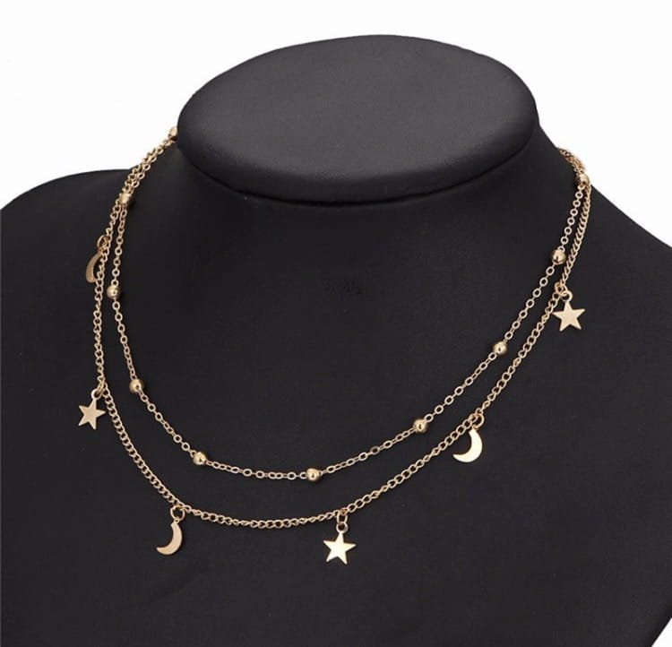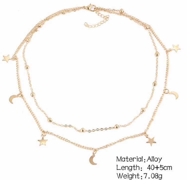 Dwuwarstwowy pozłacany łańcuszek półksiężyce i gwiazdy