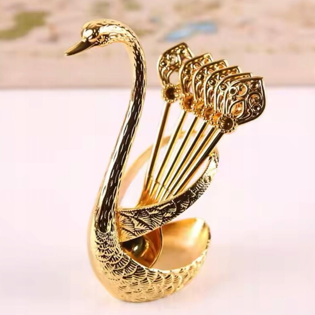 Turecki zestaw 6 łyżeczek + łabędź w kolorze ZŁOTYM.
