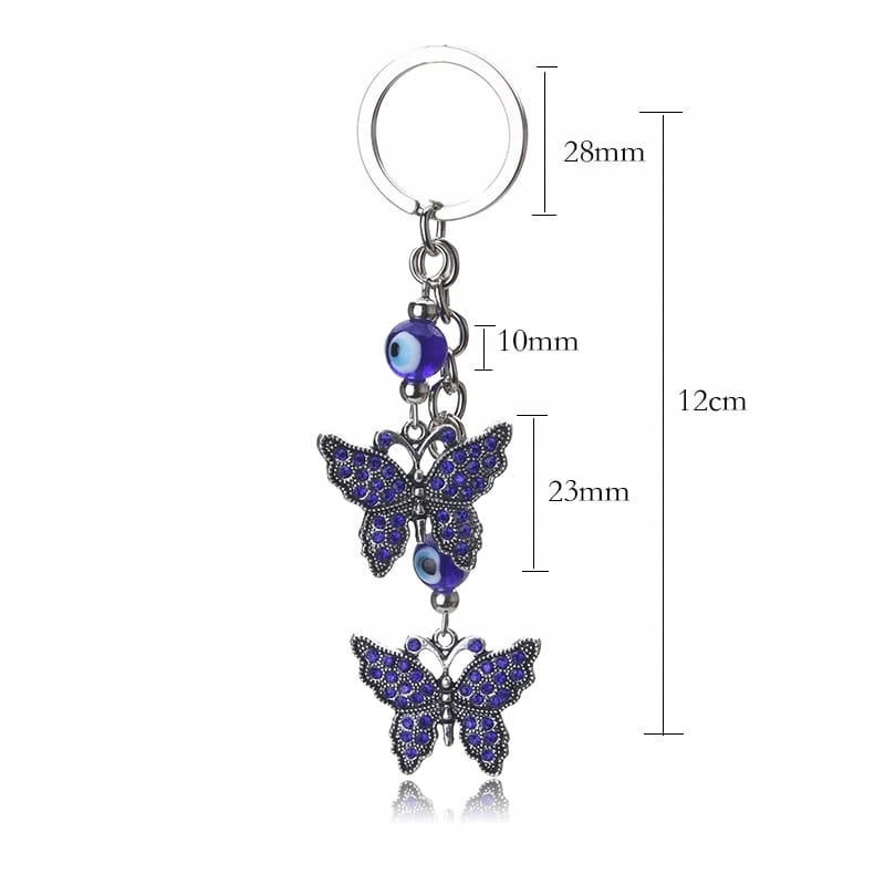 Doskonały na prezent elegancki breloczek. Ozdobiony motylkiem oraz okiem proroka (co widoczne jest na zdjęciu), według tureckiej tradycji ludowej chronić ma przed złym i zazdrosnym spojrzeniem nieprzychylnych nam osób. Można przypiąć go do kluczy lub jako ozdobny dodatek w dowolne inne miejsce, np. do suwaka od torebki.