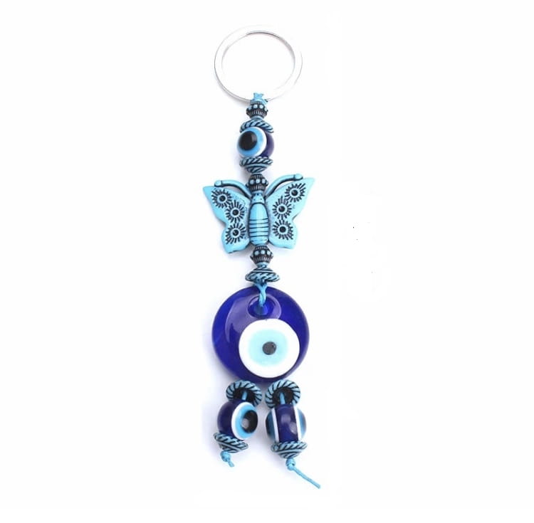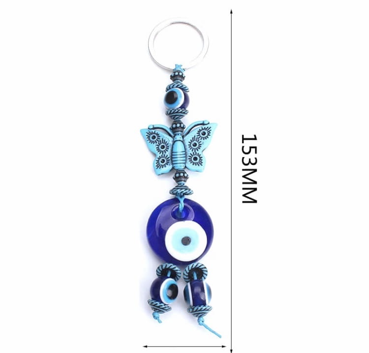 ✅ Bardzo efektowny breloczek ozdobiony szklanym Okiem Proroka oraz motylem.