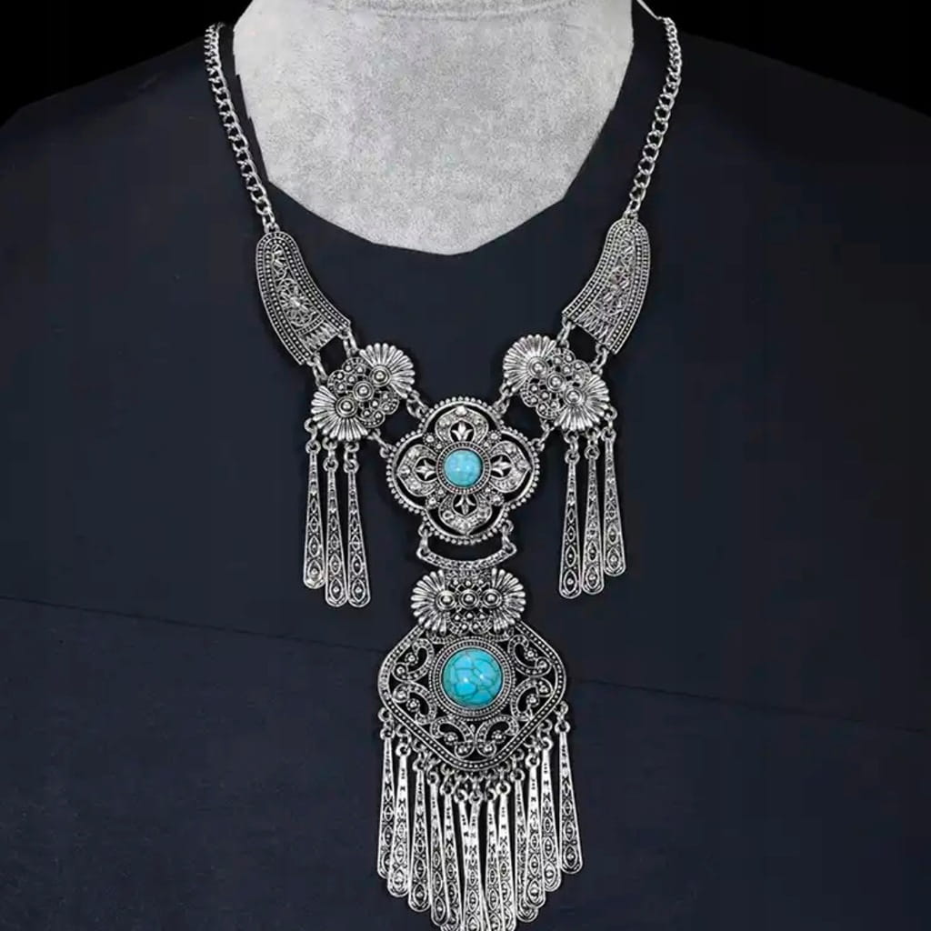 ✅ Posrebrzany turecki naszyjnik z turkusowymi oczkami.