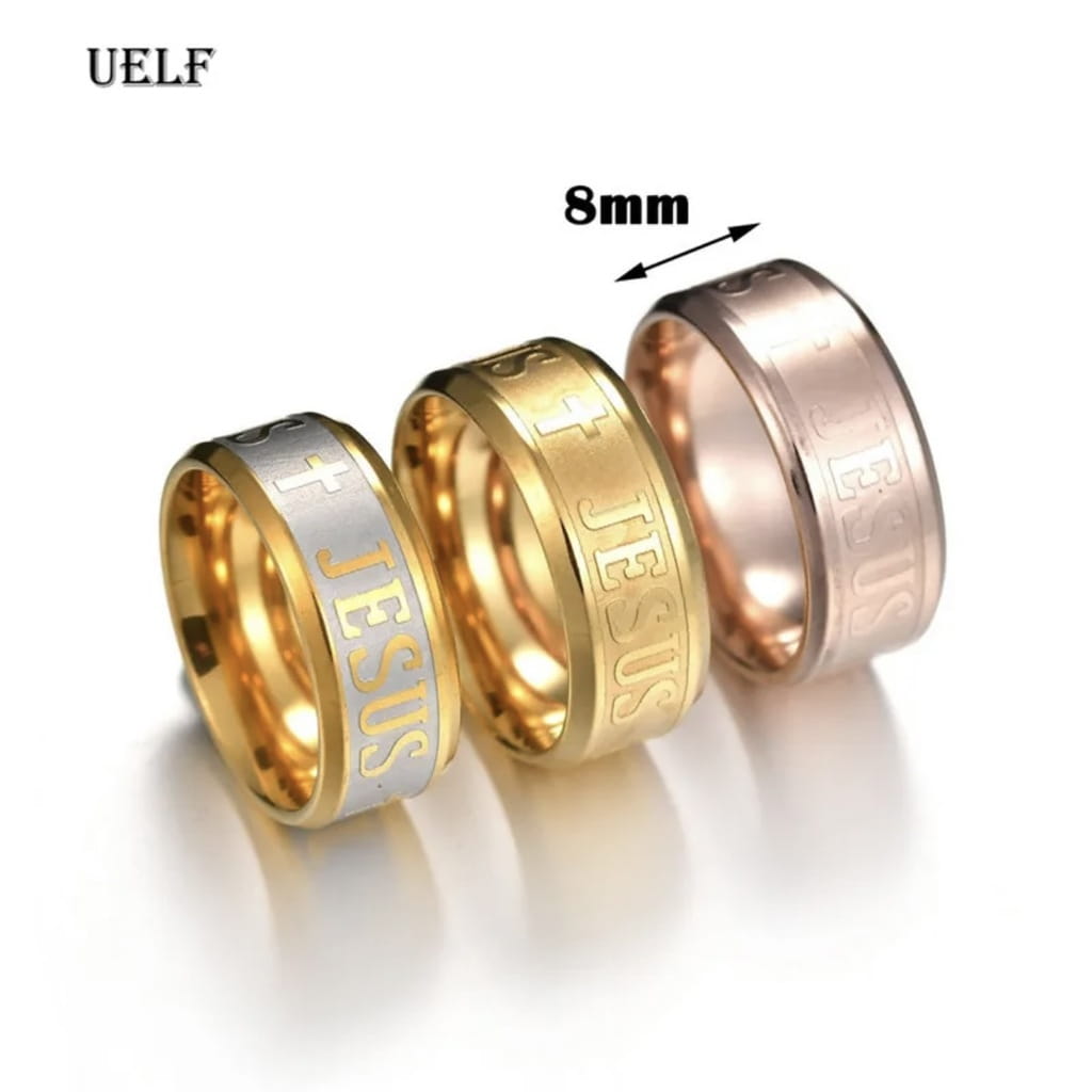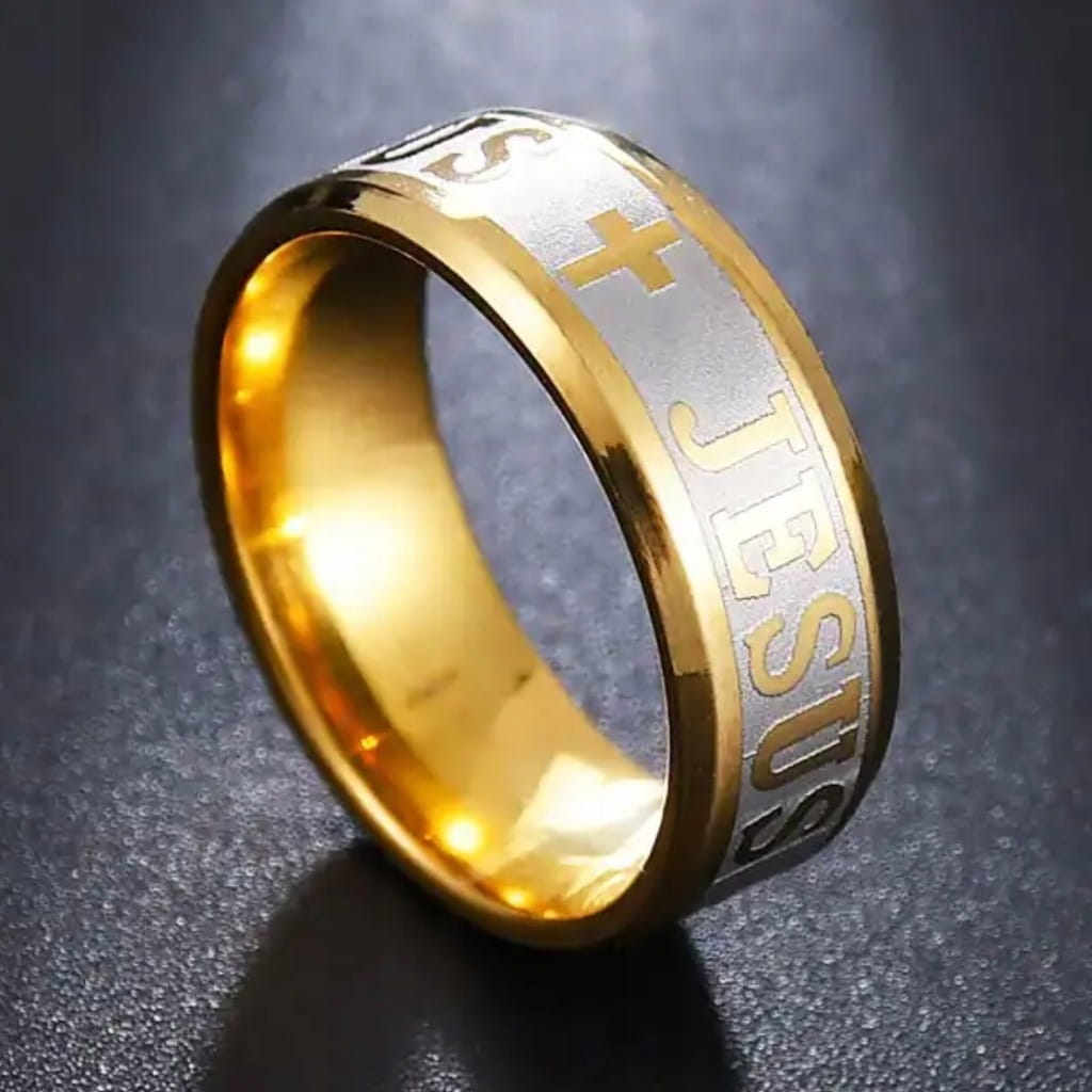 ✅Elegancka pozłacana obrączka z napisem Jezus.