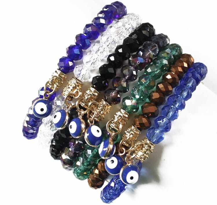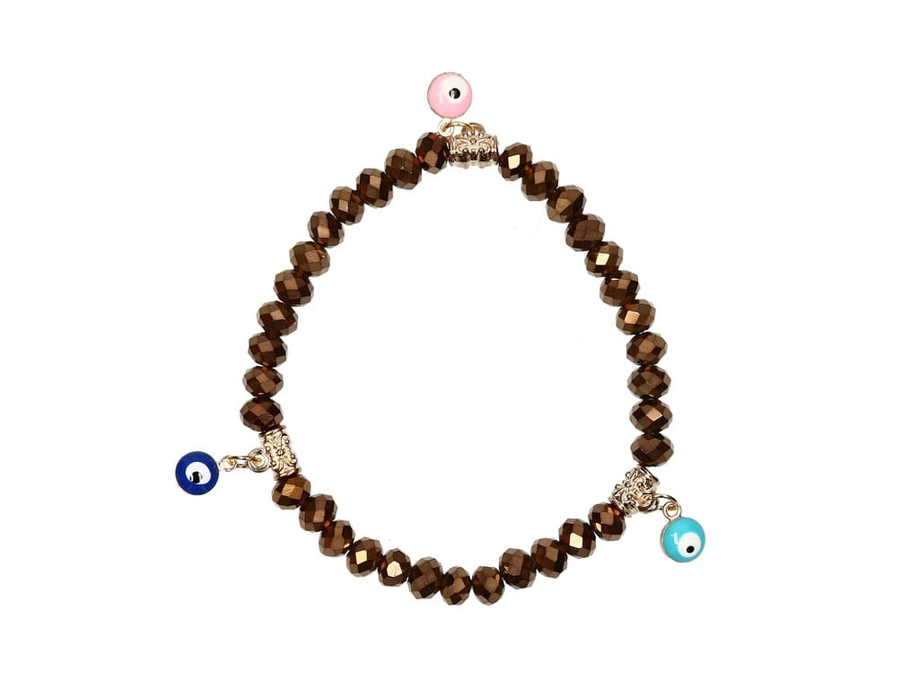Przedmiotem aukcji jest doskonała na prezent, widoczna na zdjęciu turecka bransoletka z evil eye zrobiona z brązowych koralików, rozciągana - na gumce. Oko proroka według tradycji chronić ma przed urokiem oraz złym i zazdrosnym spojrzeniem.